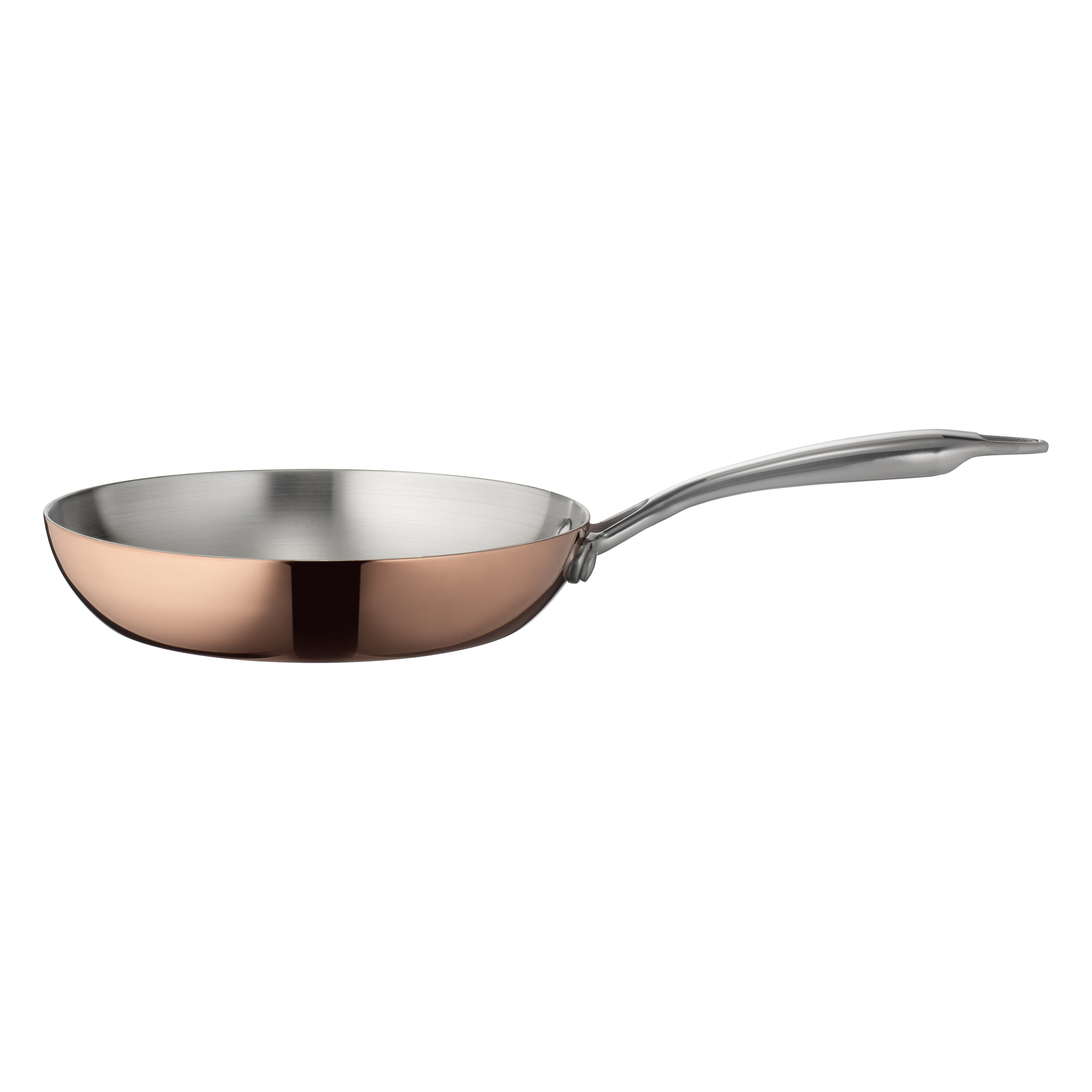 Smuk, stilren og meget funktionel stegepande fremstillet i kobber og rustfrit stål. En kraftig aluminiumskerne sikrer panden gode brugsegenskaber, og den udvendige kobber giver sammen med det flotte stålgreb en flot finish. Passer til alle varmekilder – også induktion.