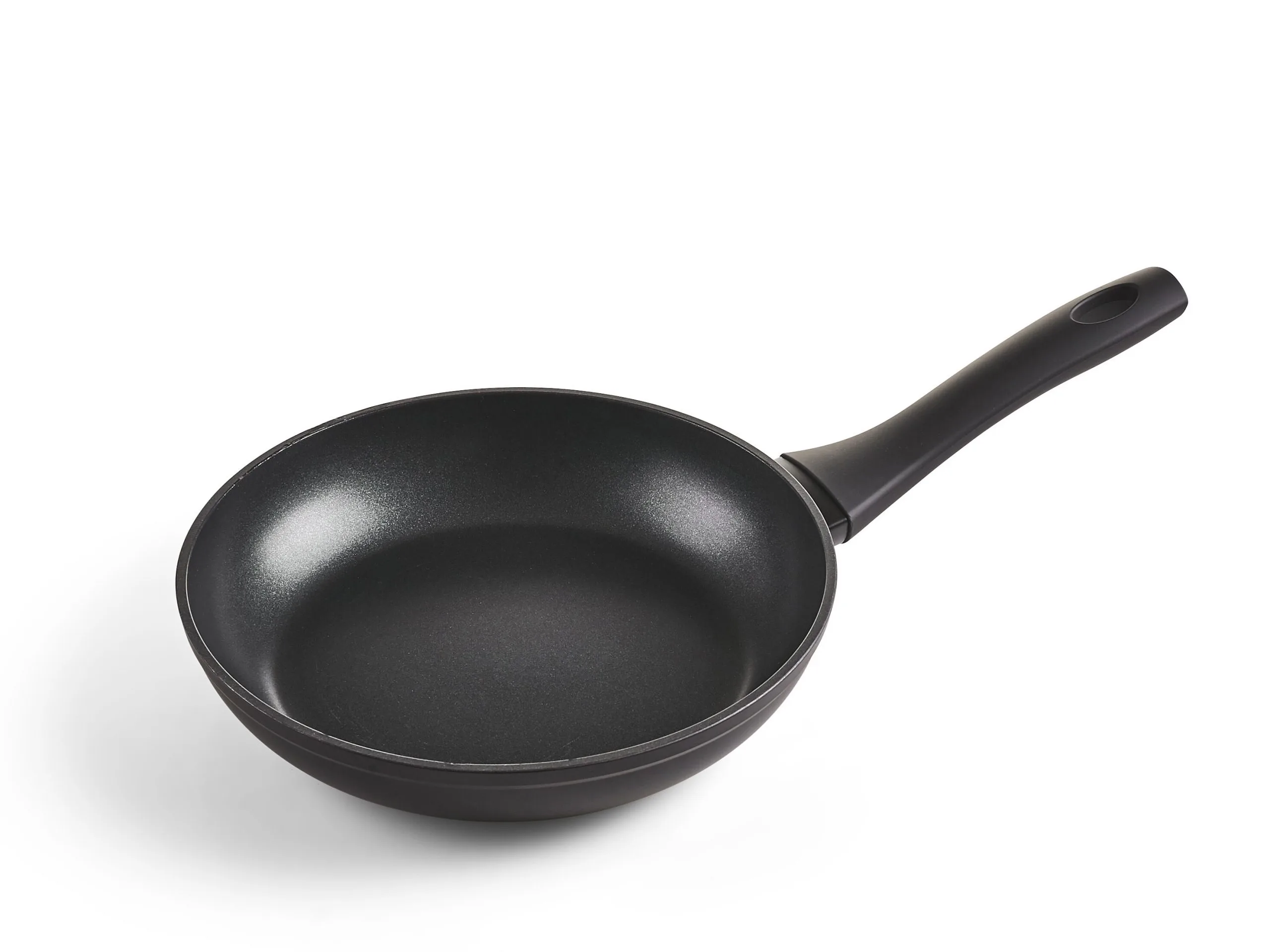 Kraftig stegepande med tyk induktionsbund og en non-stick belægning indvendigt, så du kan minimere brugen af fedtstof.