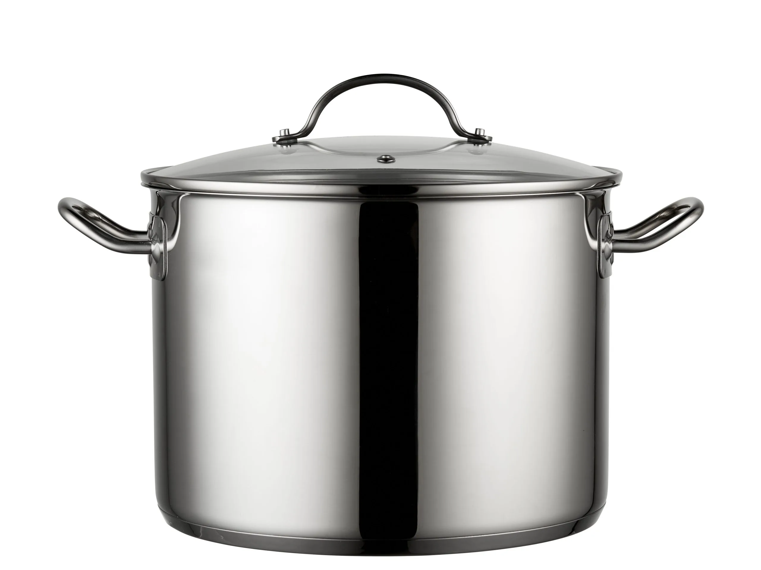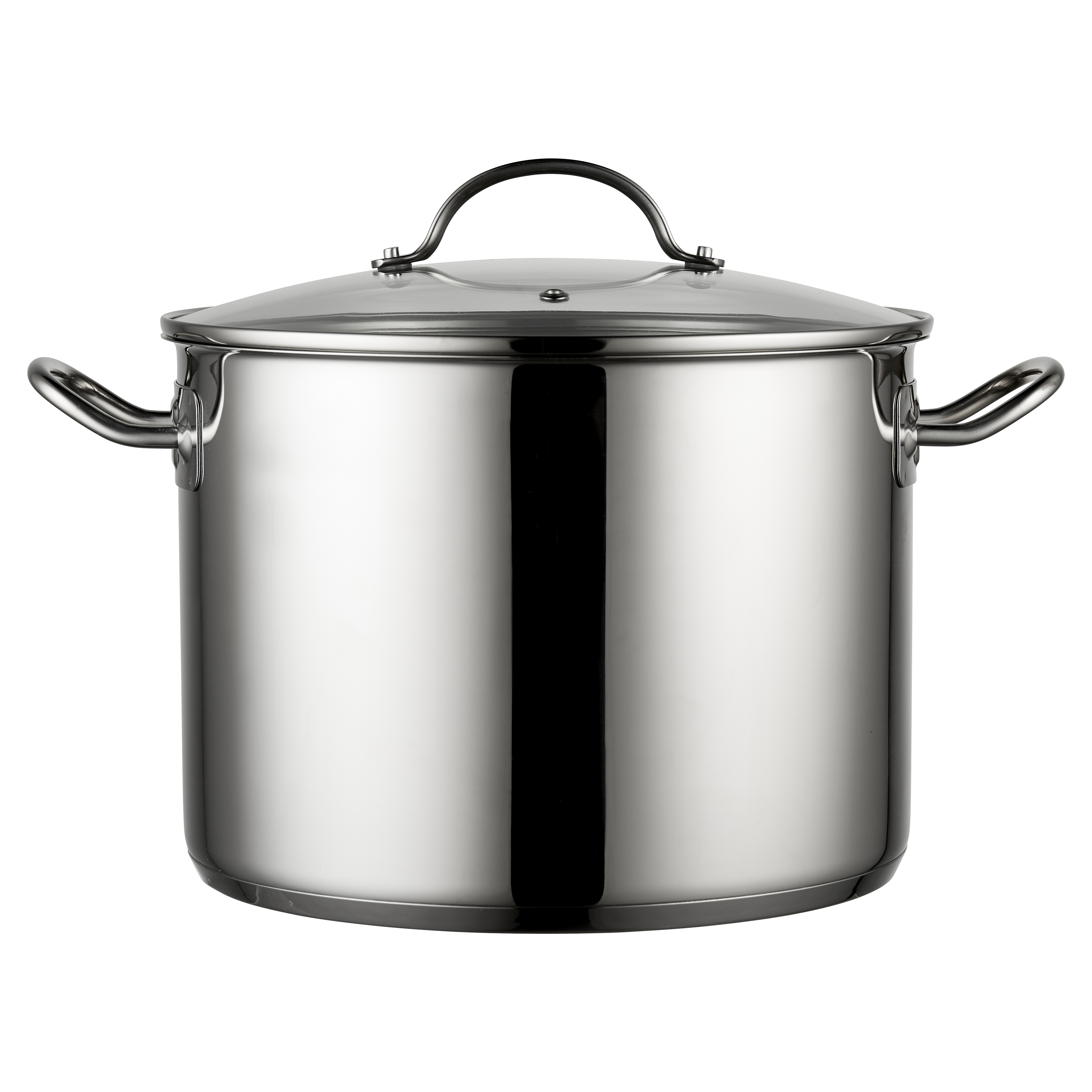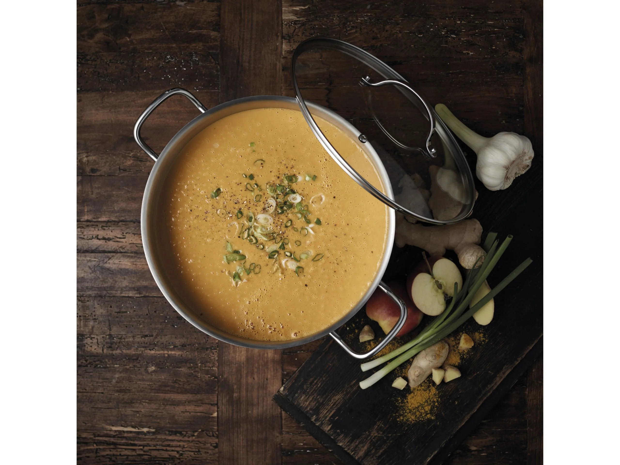 Suppegryde, 10 liter, fremstillet i 18/8 rustfrit stål med kraftig induktionsbund, blankpoleret udvendigt, matpoleret indvendigt og med måleskala.