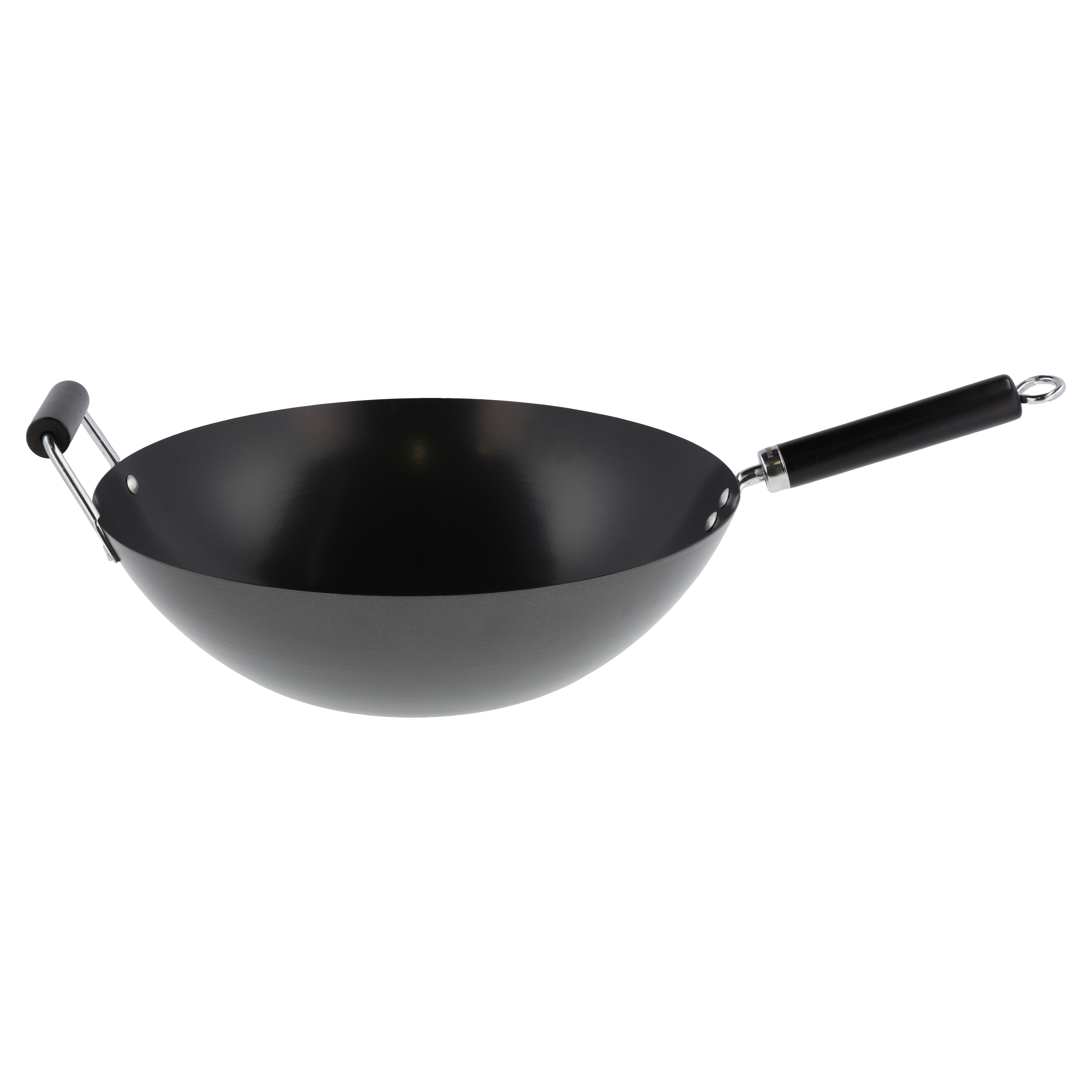 Wok fremstillet i sort carbonstål med 2-lags non-stick-belægning, som sikrer, at maden ikke hænger fast, og som letter den efterfølgende rengøring. Langt håndtag og sidegreb i sort træ. Sidegrebet gør, at wokken er lettere at håndtere. Velegnet til alle varmekilder, inkl. induktion. Håndopvaskes, også inden brug første gang.