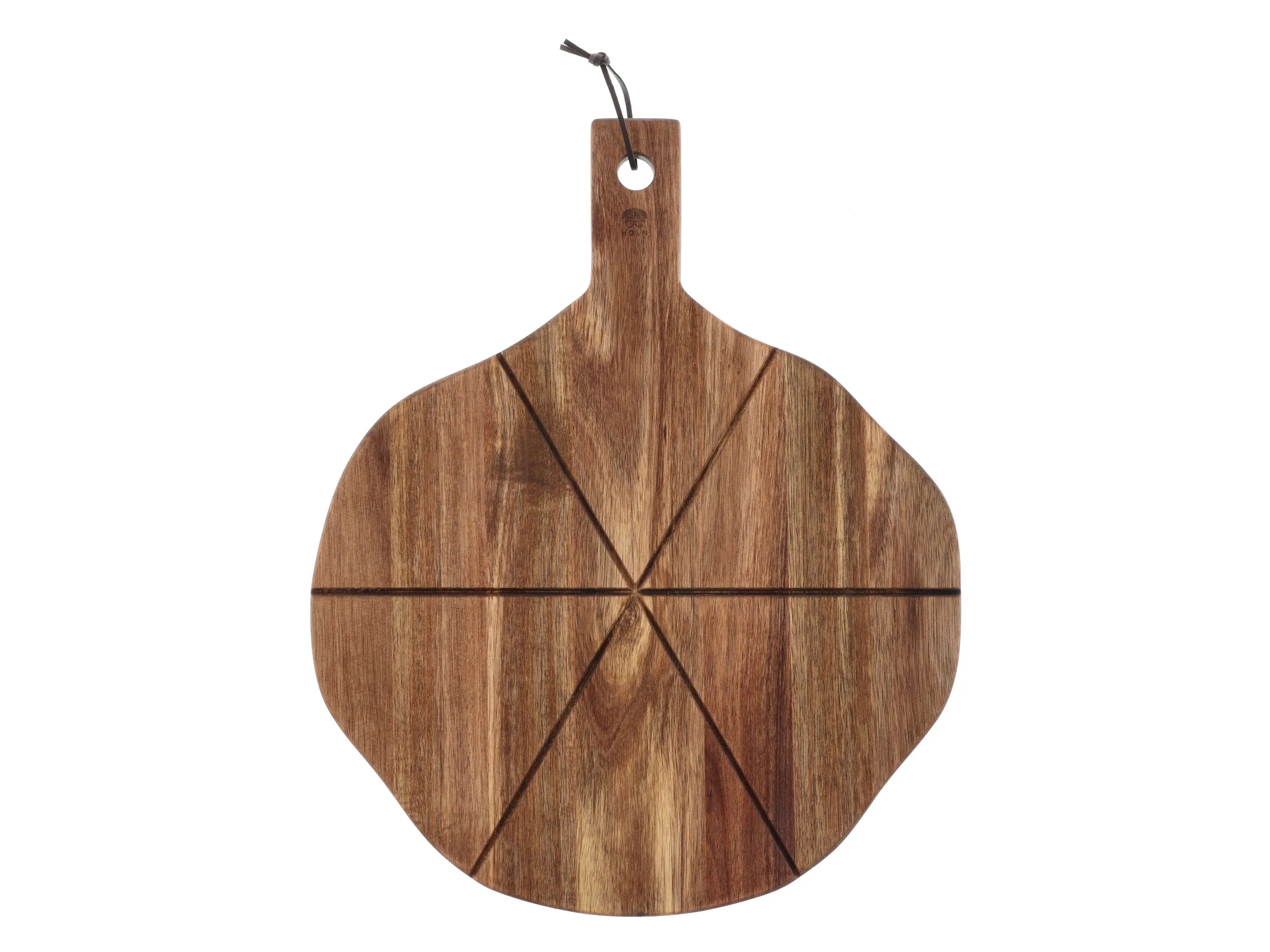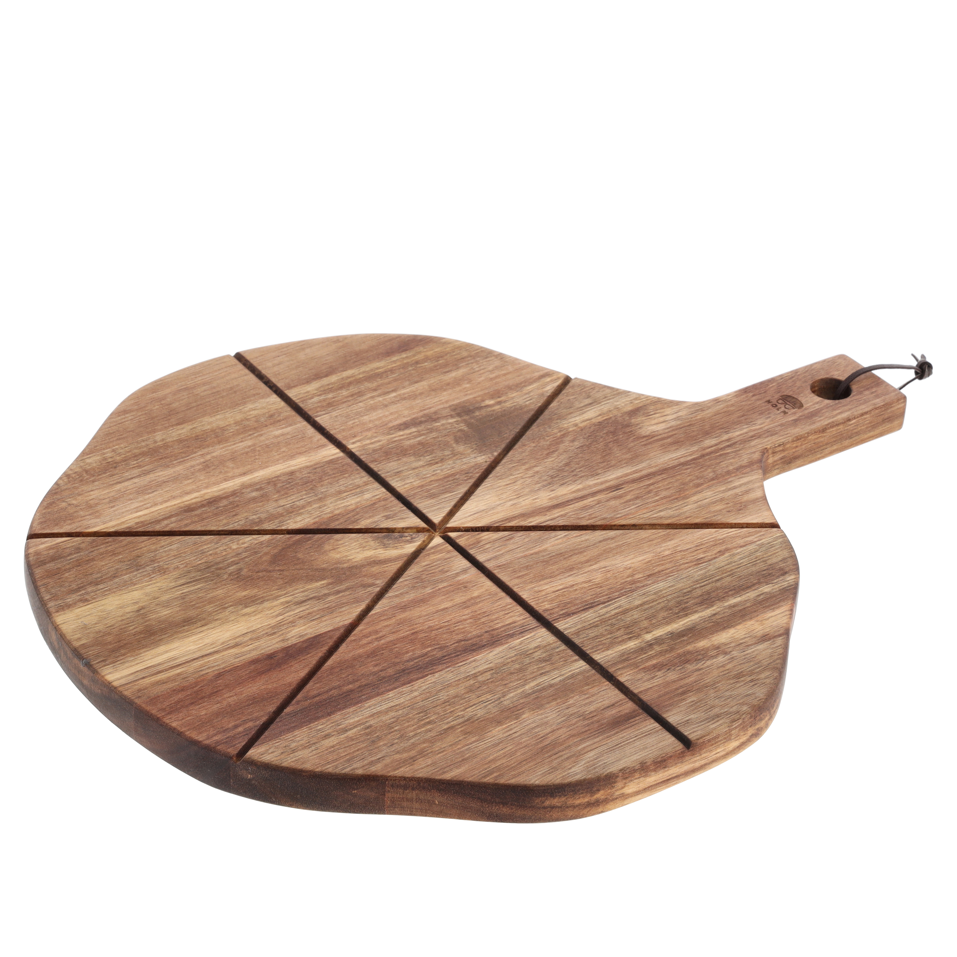Pizzabræt i akacietræ med et solidt håndtag. Server en sprød pizza på et flot og rustikt serveringsbræt med riller, der gør det let at skære ud i lige store stykker. På den anden side er pladen glat og kan bruges til at servere fx ost og tapas på. 44 x 36 x 1,9 cm.