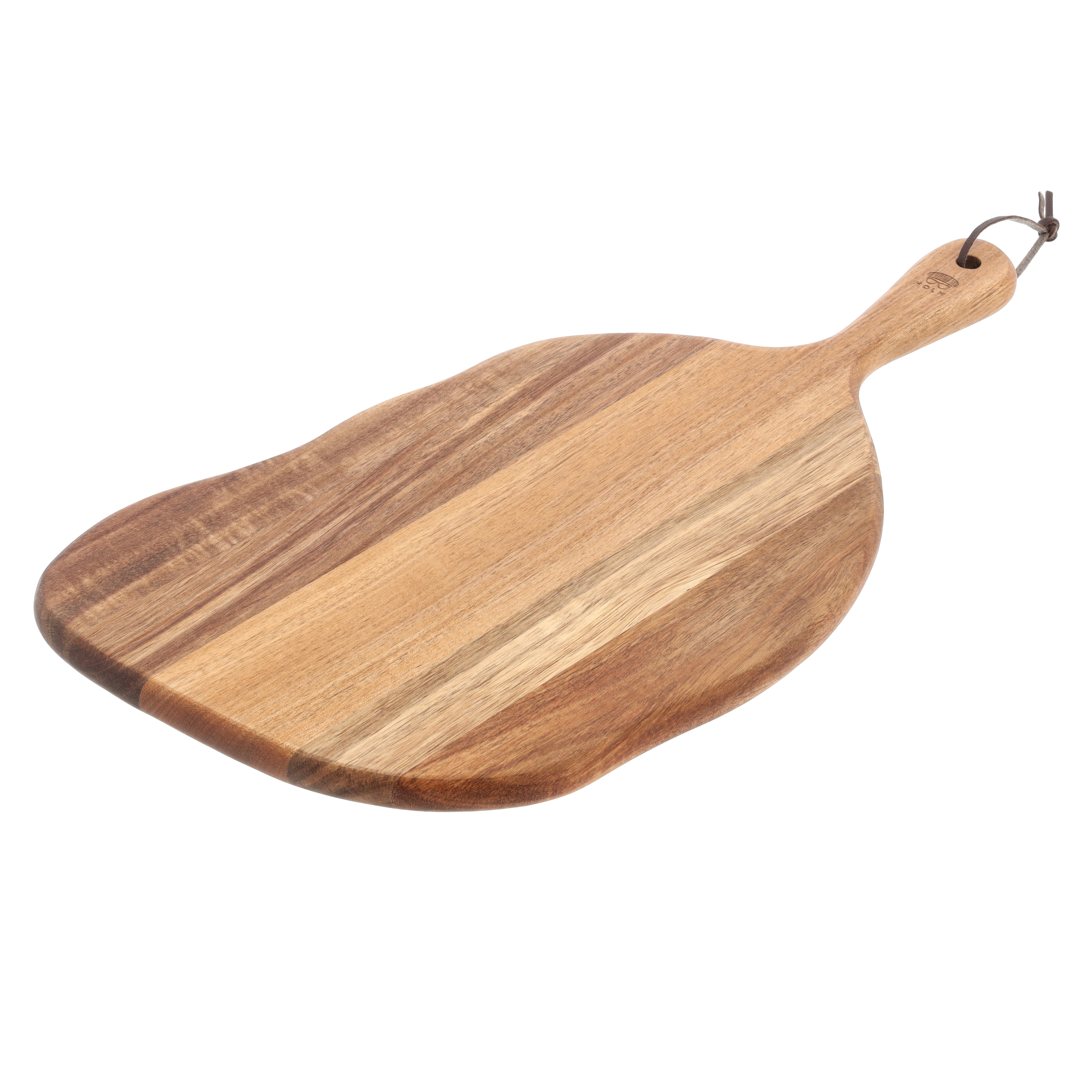Serveringsbræt med bløde organiske former fremstillet i akacietræ. Brættet er ideelt til servering af ost, tapasretter og andre anretninger eller som skærebræt under tilberedning af måltidet. Med ophængshul og strop. 44 x 22,7 x 1,5 cm