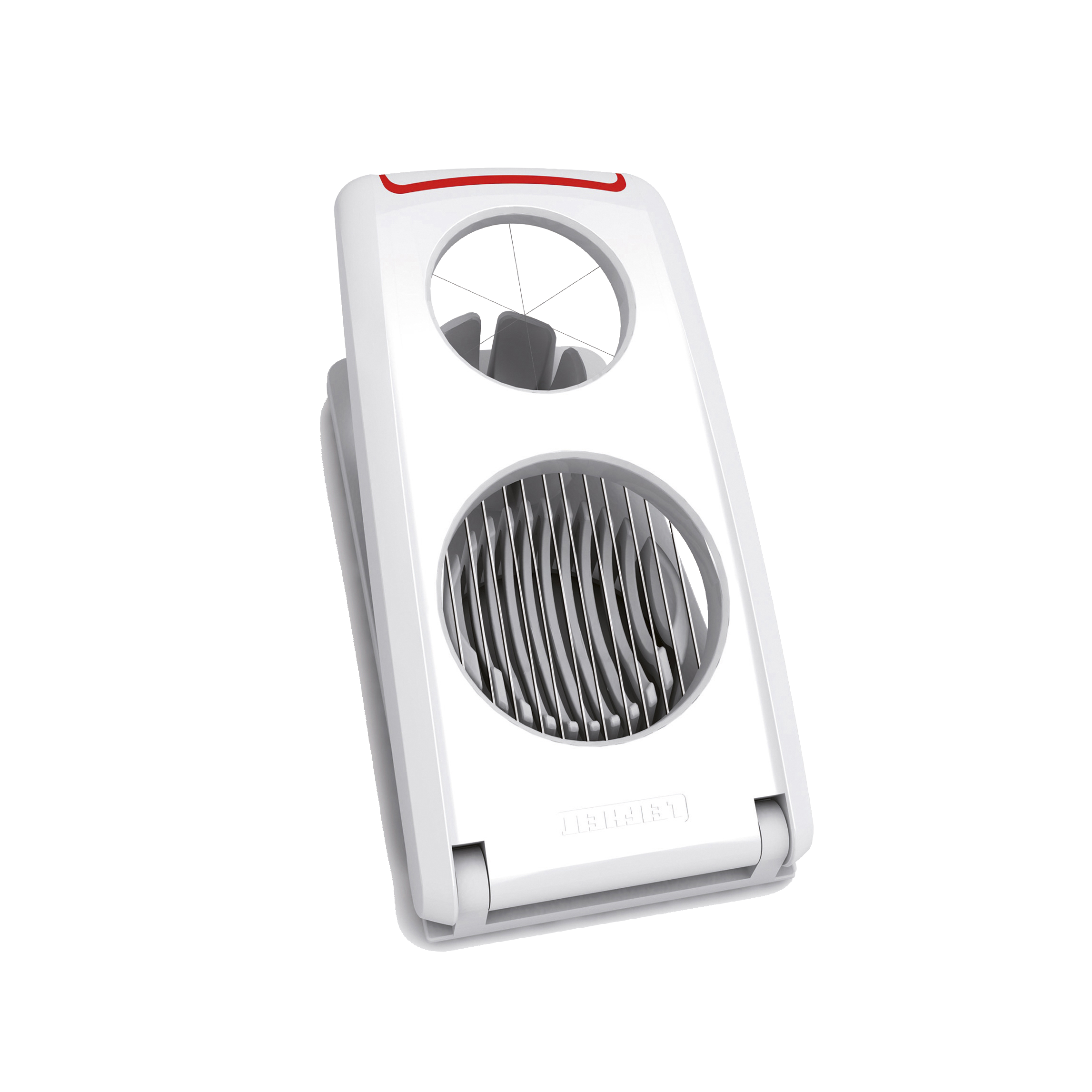 Kan dele æggene i ovale og runde skiver samt både. Let at rengøre, med rustfrit stål skære tråd. Også egnet til champignon og kogte kartofler.