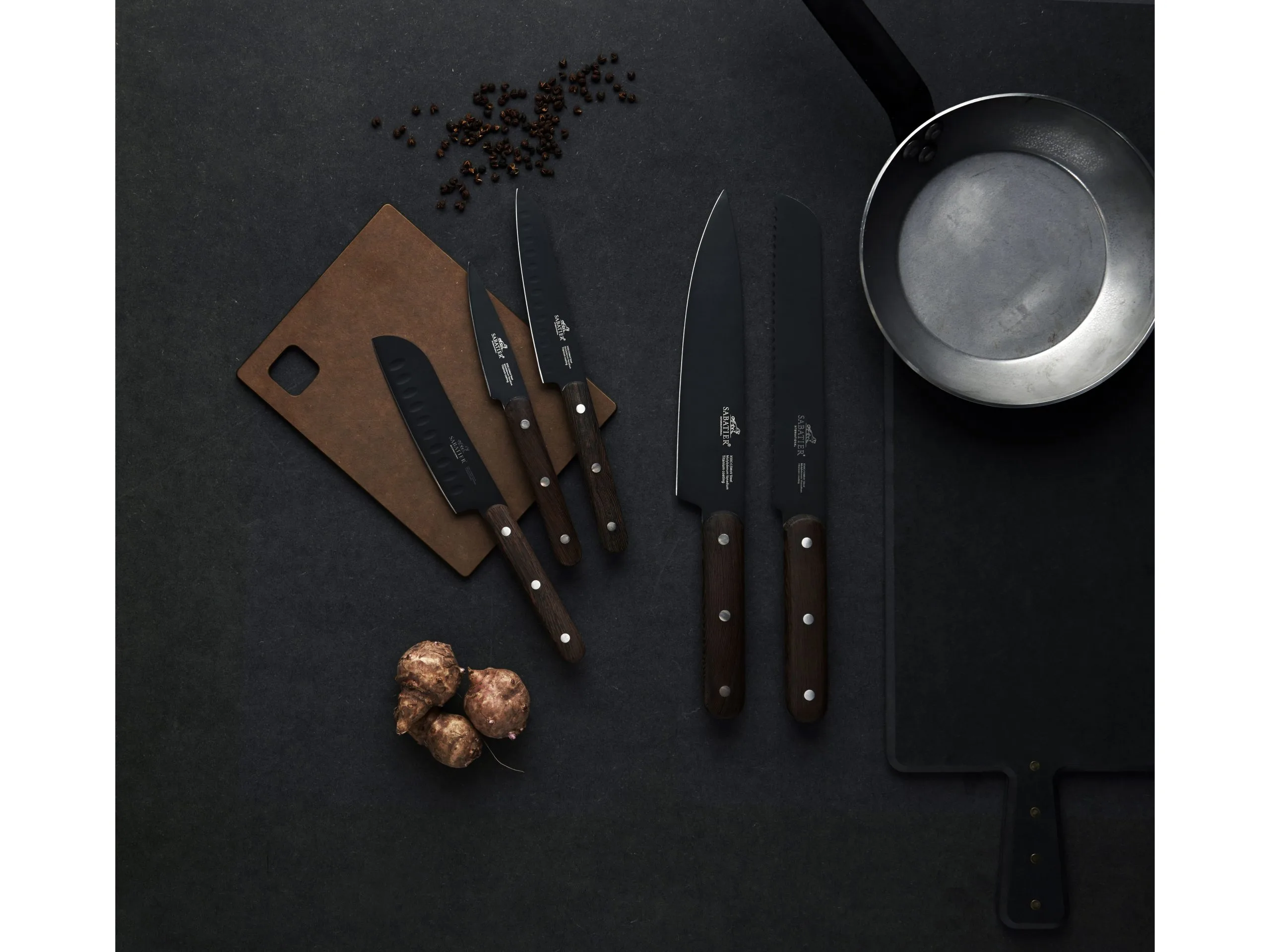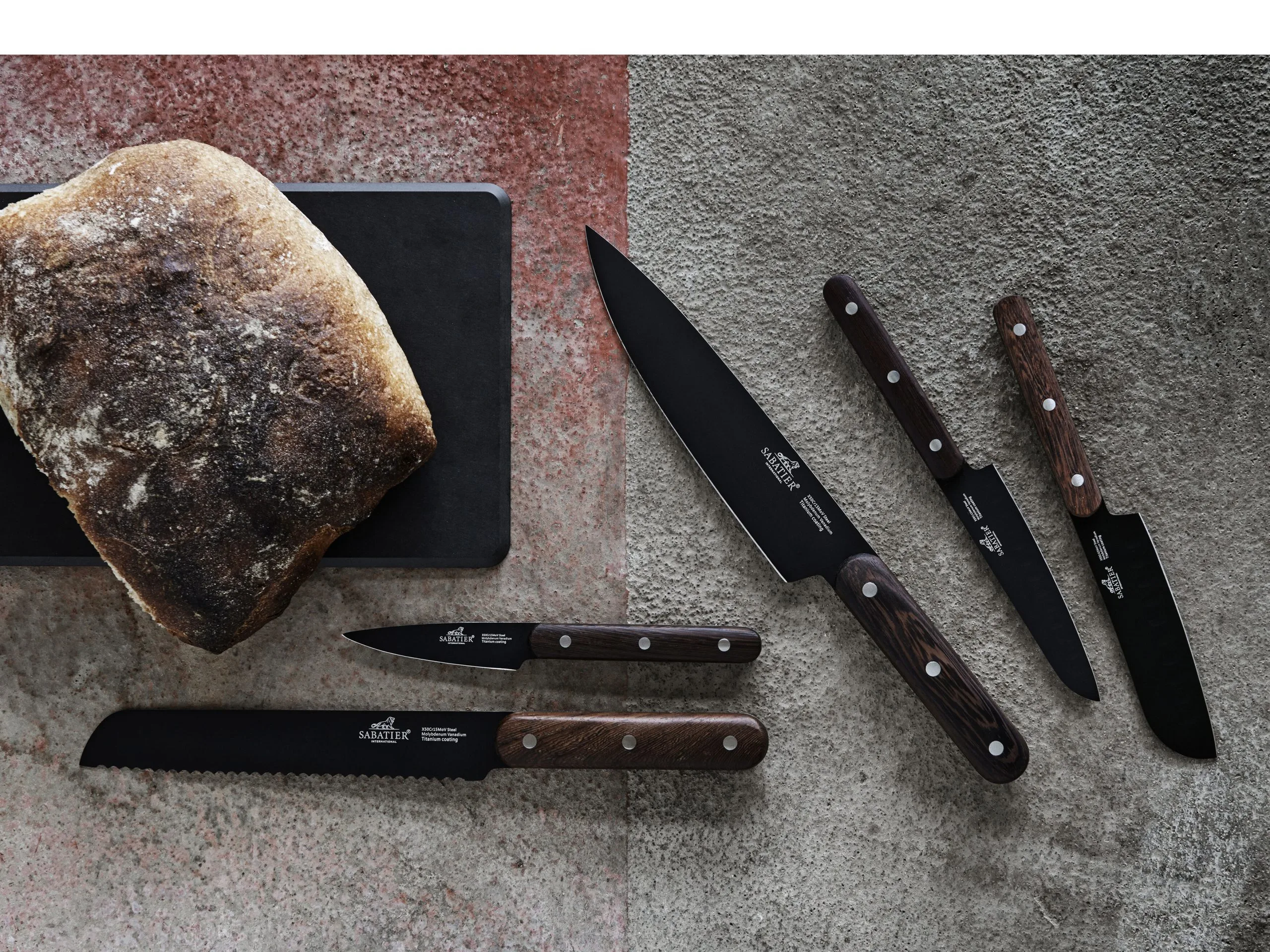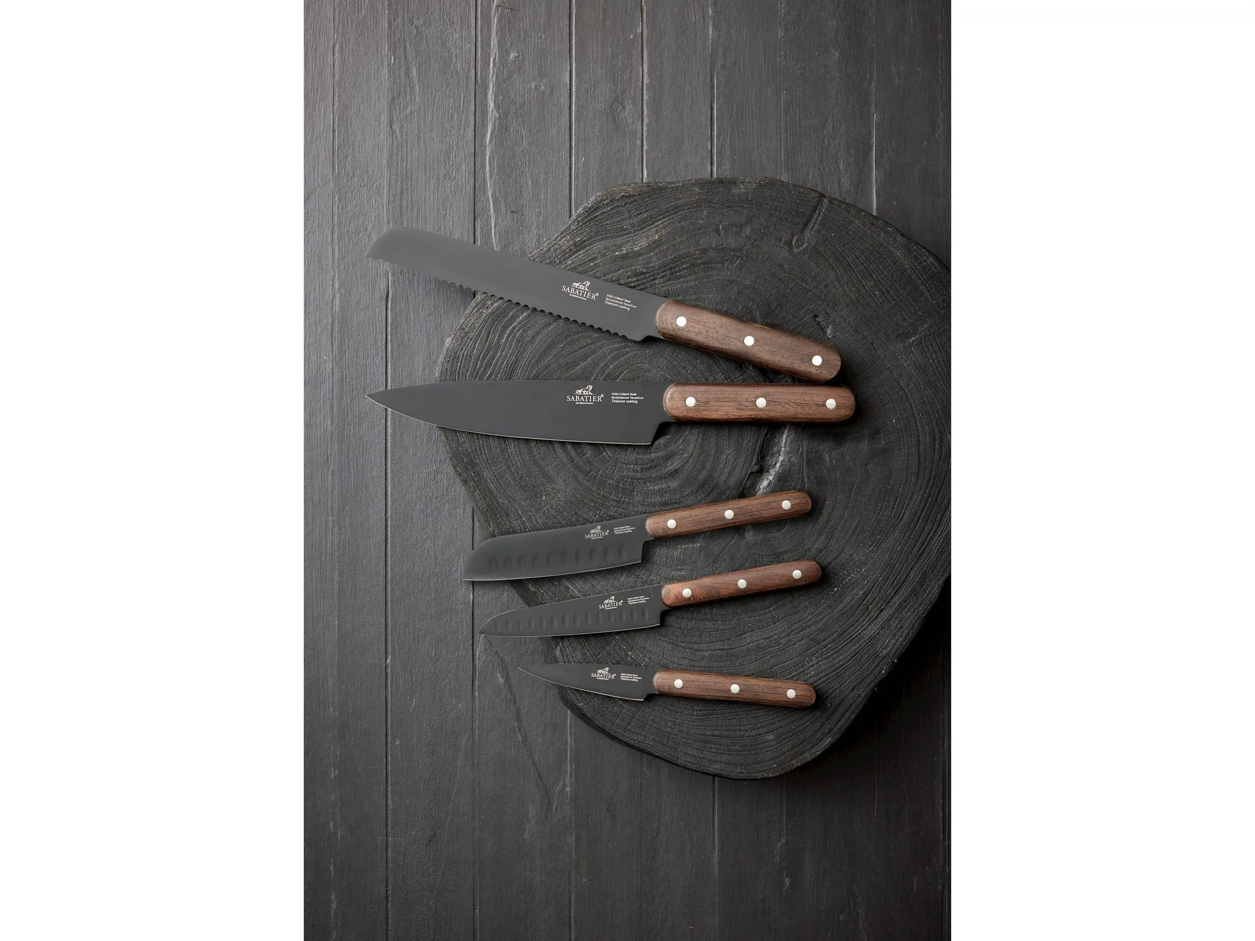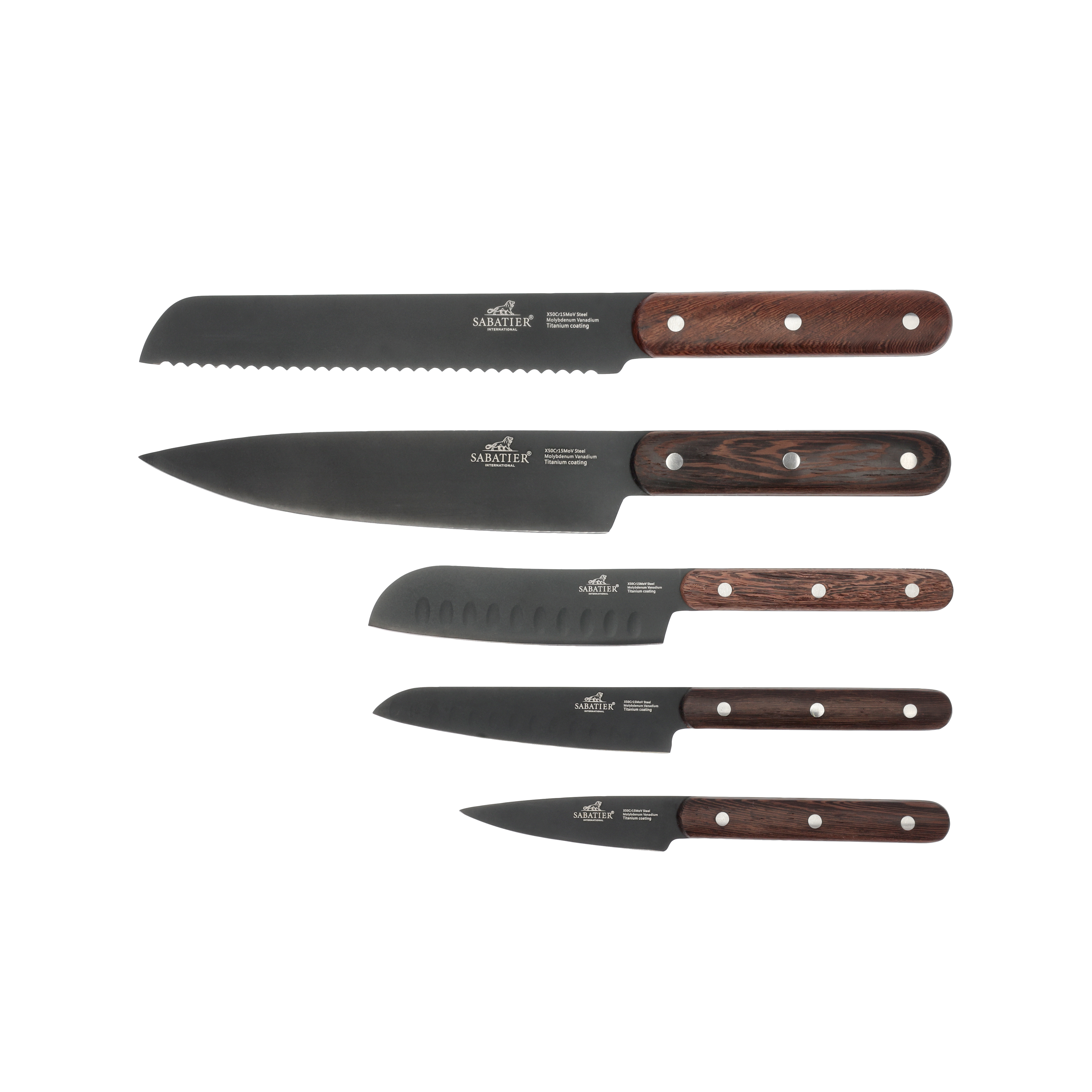Phenix knivsæt med fem knive i Lion Sabatiers verdenskendte kvalitet og med håndtag i eksklusivt wenge-træ. De superskarpe knivblade er skabt af stærkt rustfrit stål (5Cr15MoV) og belagt med titanium.