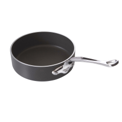 3-4 mm sort, anodiseret aluminium. Keramisk “Eclipse” non-stick belægning, der er fantastisk stærk og holdbar. Tåler dog ikke metalredskaber. Ekstra tyk bund, der giver en hurtig, ensartet varmeledningsevne og -fordeling. Stort, professionelt håndtag af rustfrit stål med påsatte nitter, der forbliver koldt. Kan bruges på alle varmekilder, også induktion. Tåler maskinopvask.