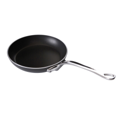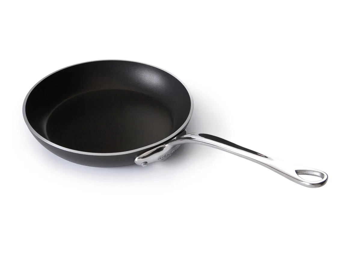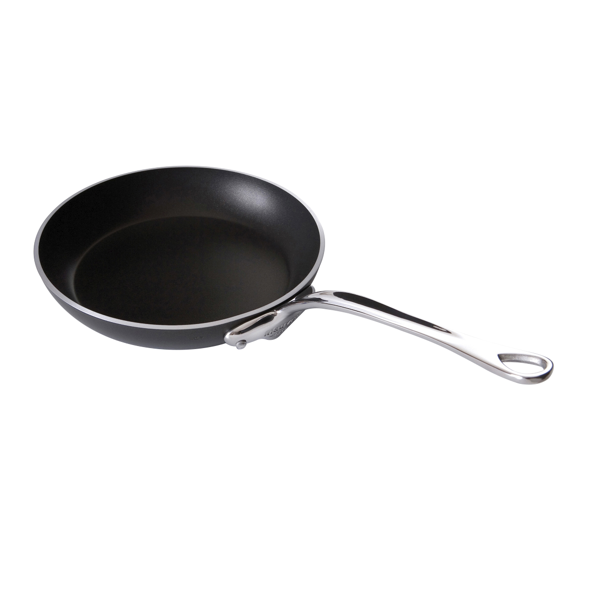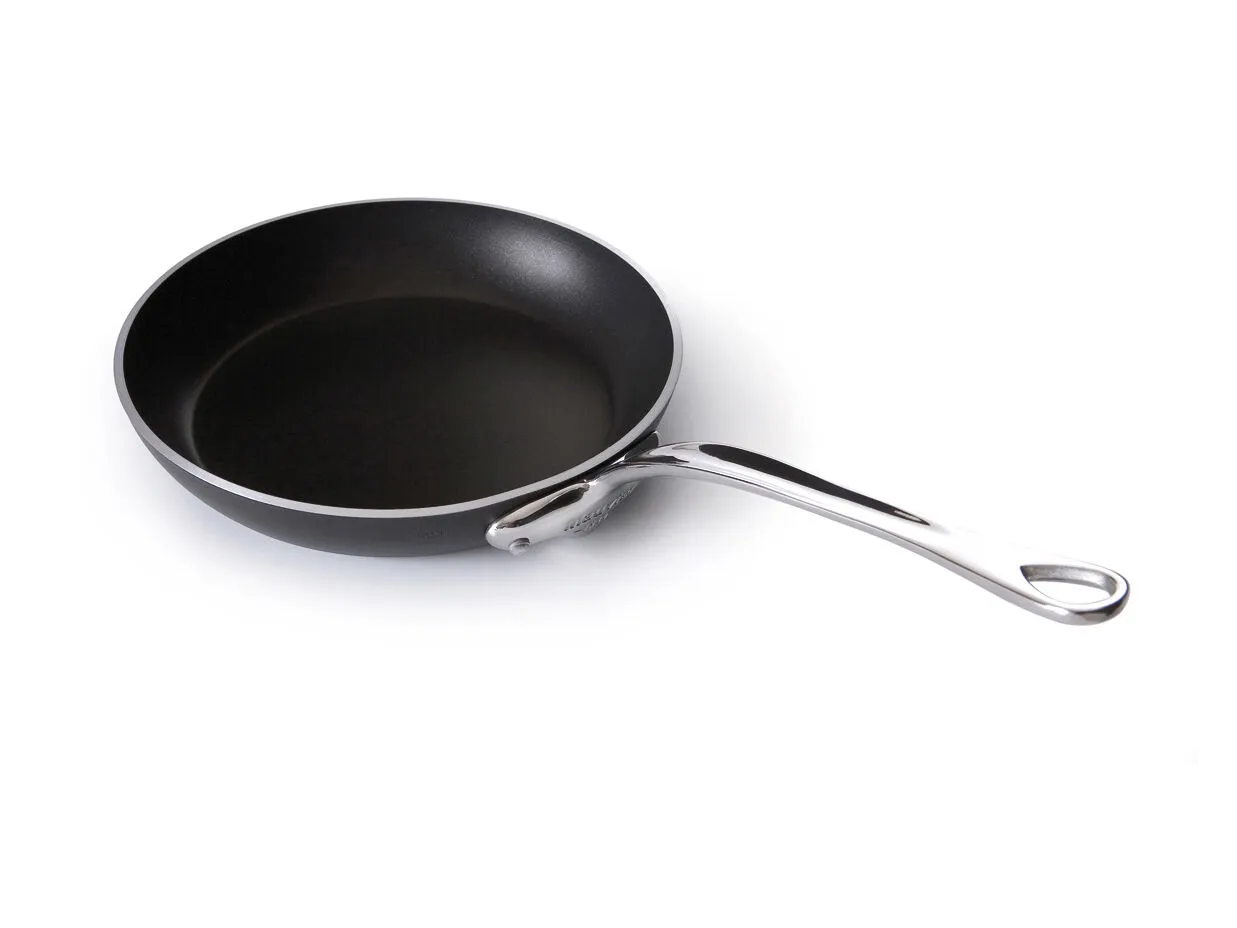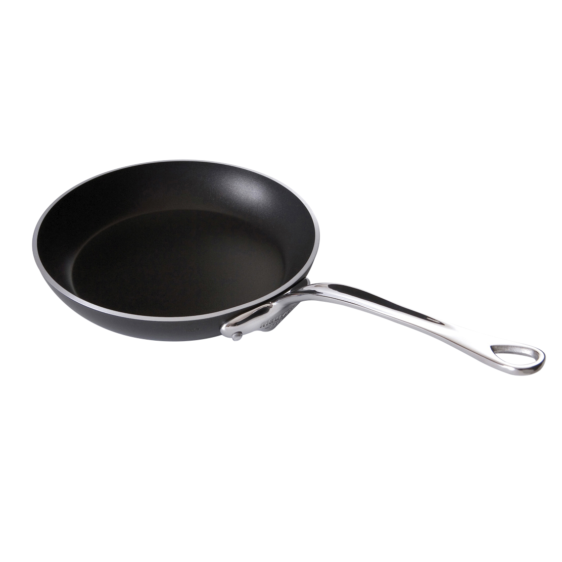 3-4 mm sort, anodiseret aluminium. Keramisk “Eclipse” non-stick belægning, der er fantastisk stærk og holdbar. Tåler dog ikke metalredskaber. Ekstra tyk bund, der giver en hurtig, ensartet varmeledningsevne og -fordeling. Stort, professionelt håndtag af rustfrit stål med påsatte nitter, der forbliver koldt. Kan bruges på alle varmekilder, også induktion. Tåler maskinopvask.