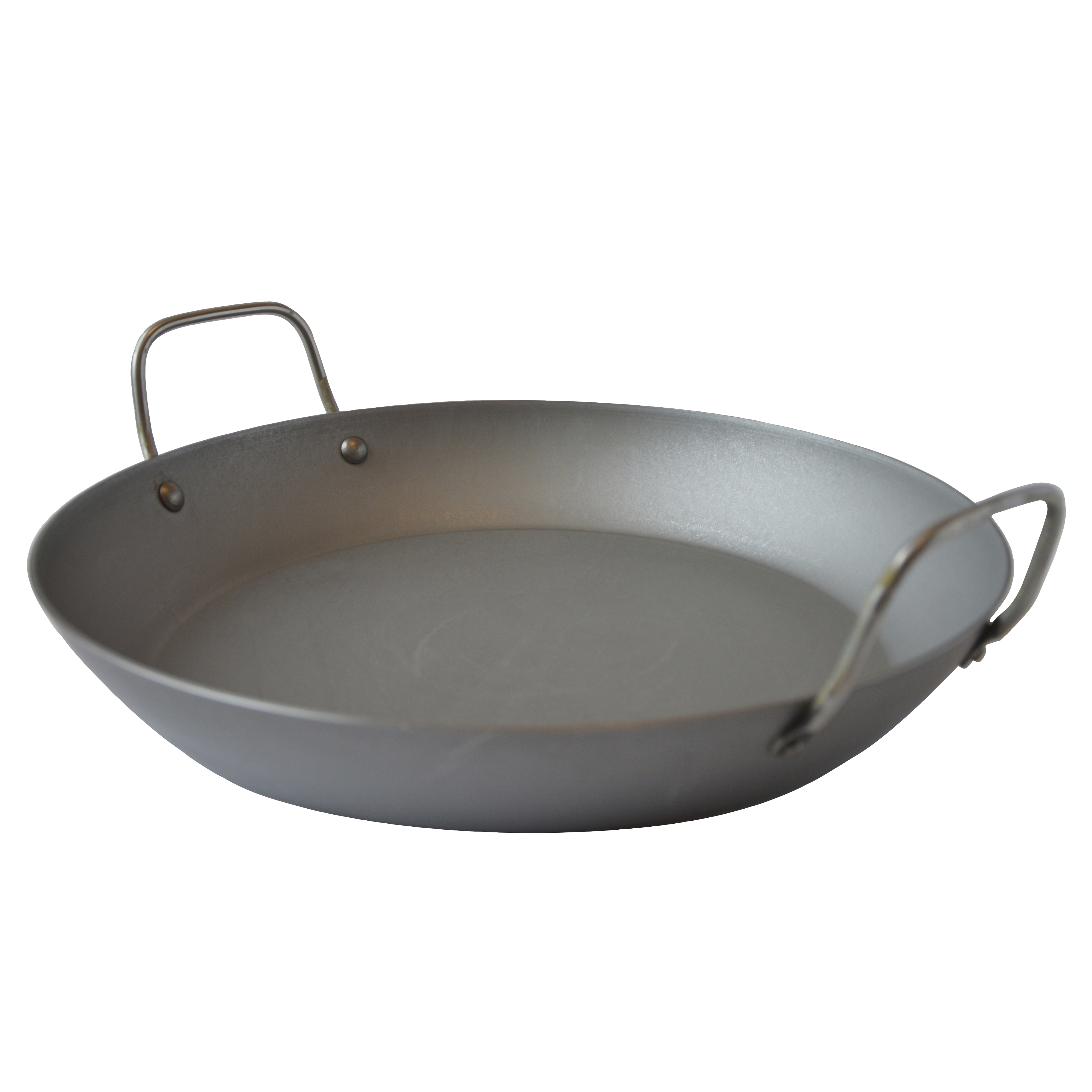 Professionel kvalitet i sort stål, der med tiden får en naturlig non-stick-egenskab. Ekstra tykt sort stål (kulstofstål) på 1,2-3 mm. Håndtag i stål med stålnitter. Fremragende varmeledende egenskaber. Tåler høje temperaturer og metalredskaber. Lettere end støbejern. Made in France.