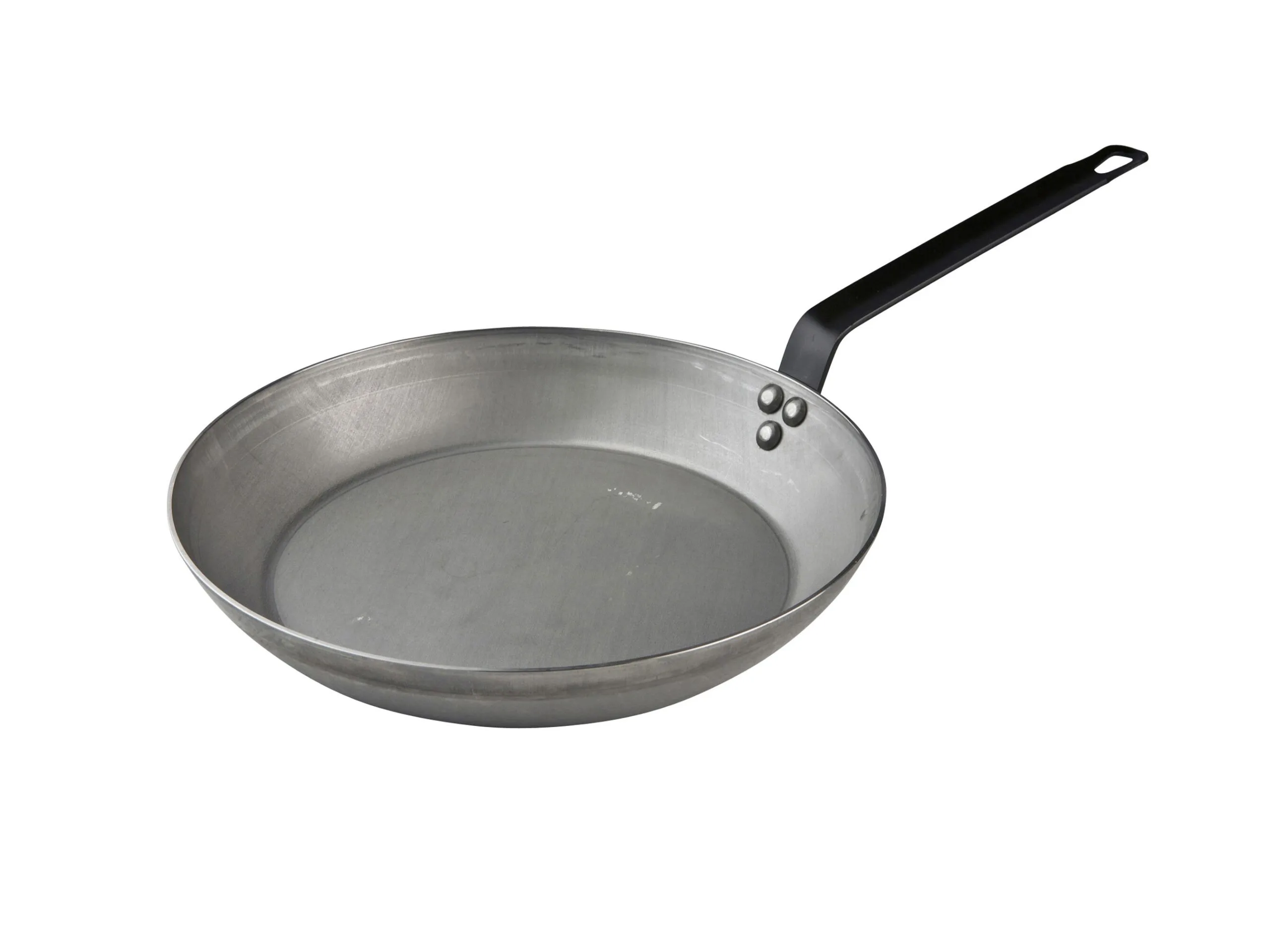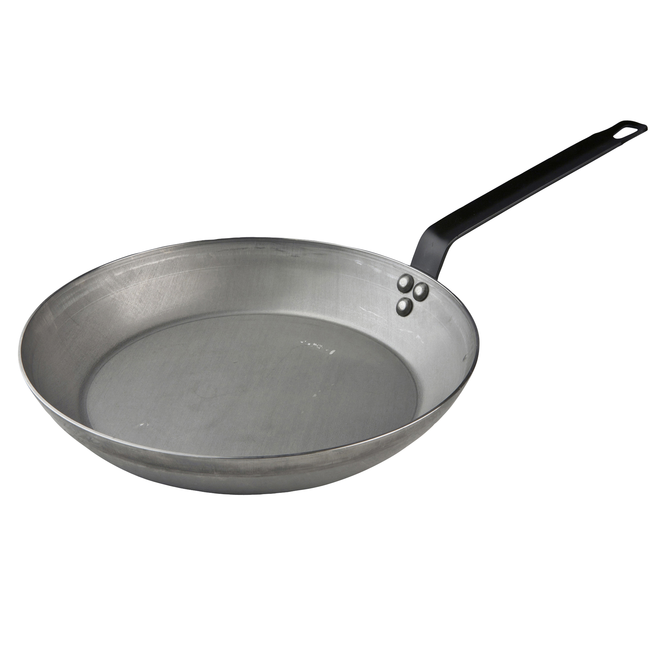 Professionel kvalitet i sort stål, der med tiden får en naturlig non-stick-egenskab. Ekstra tykt sort stål (kulstofstål) på 1,2-3 mm. Håndtag i stål med stålnitter. Fremragende varmeledende egenskaber. Tåler høje temperaturer og metalredskaber. Lettere end støbejern. Made in France.