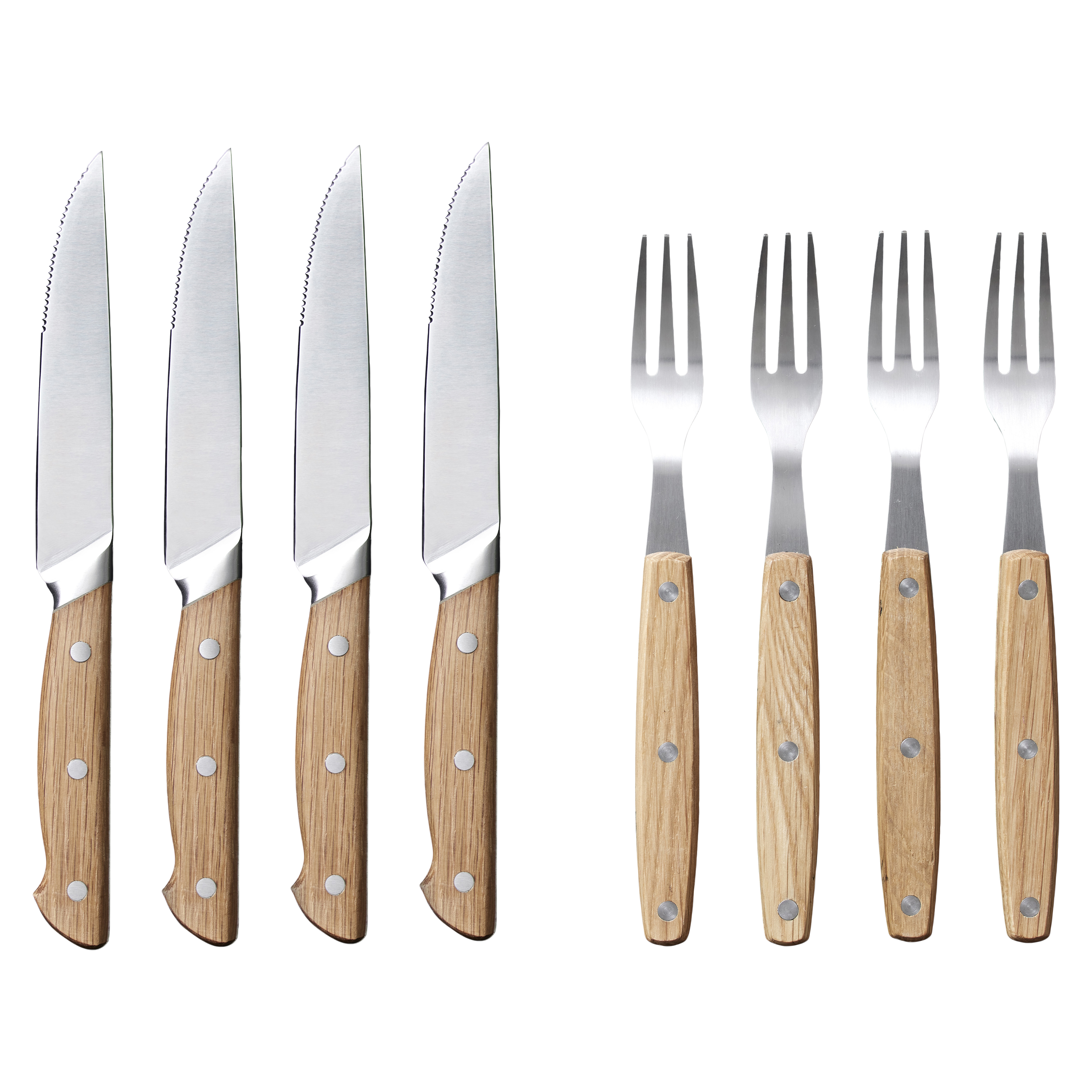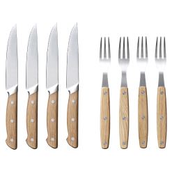 Bestiksæt med 4 steakknive og 4 steakgafler. Sættet er velegnet til udskæring af en god bøf. Det kan også bruges til en lækker pizza.