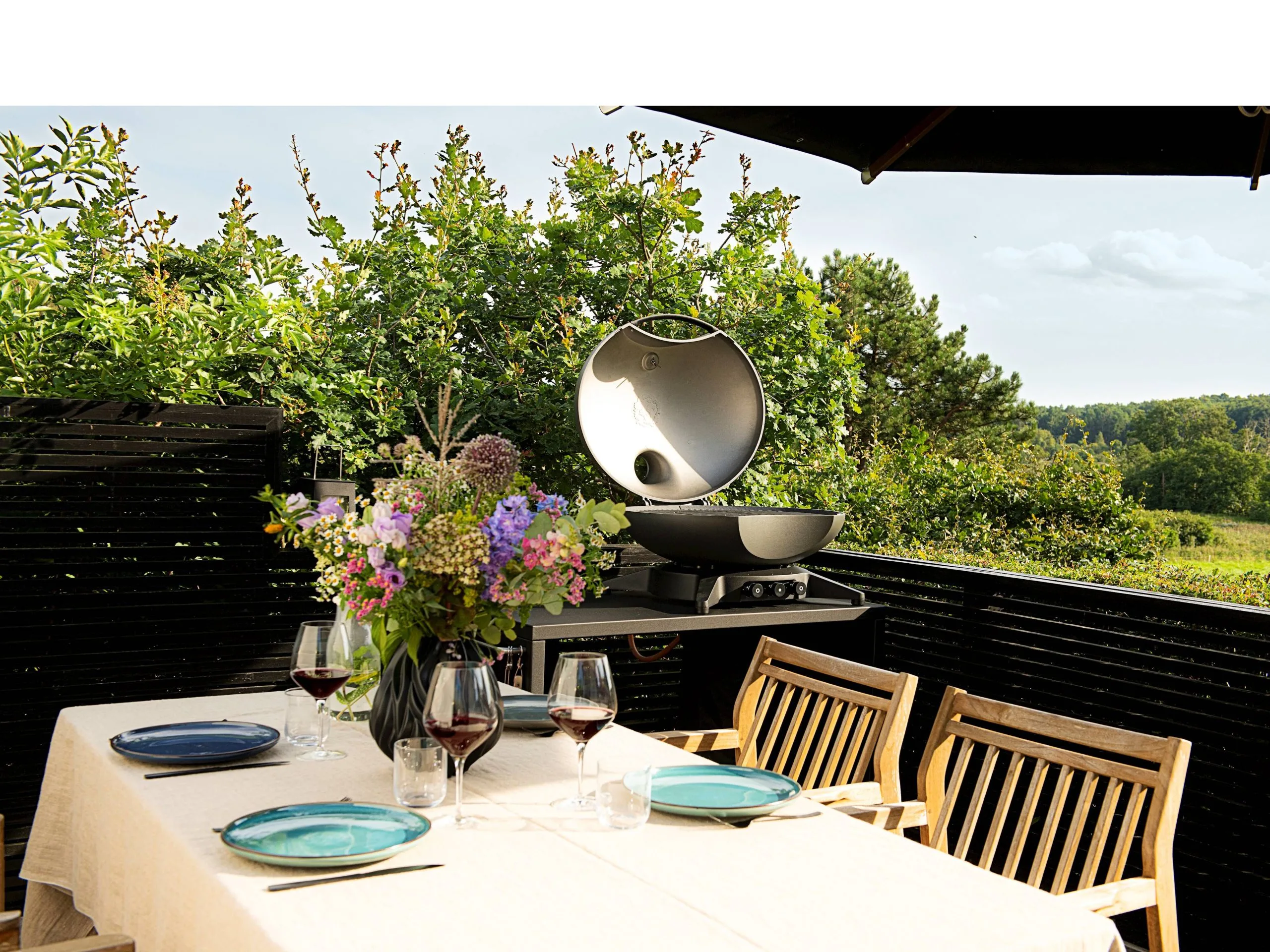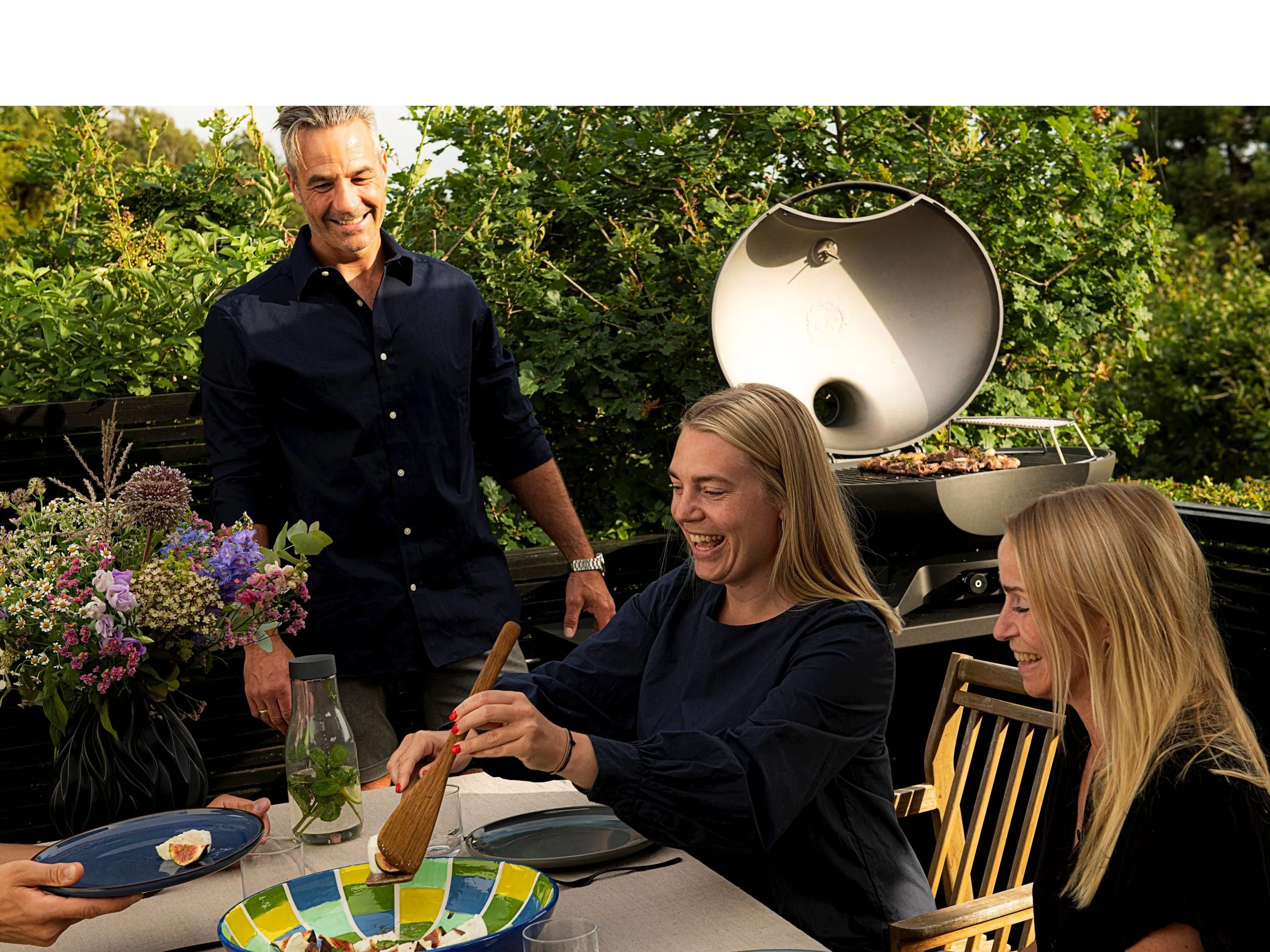 Det minimalistiske greb fuldender formens front, både designmæssigt og ergonomisk. Samtidig giver det fire-benede understel grillen et stabilt fundament, som helt naturligt og diskret danner rum for både betjeningspanel og gastilslutningen.
