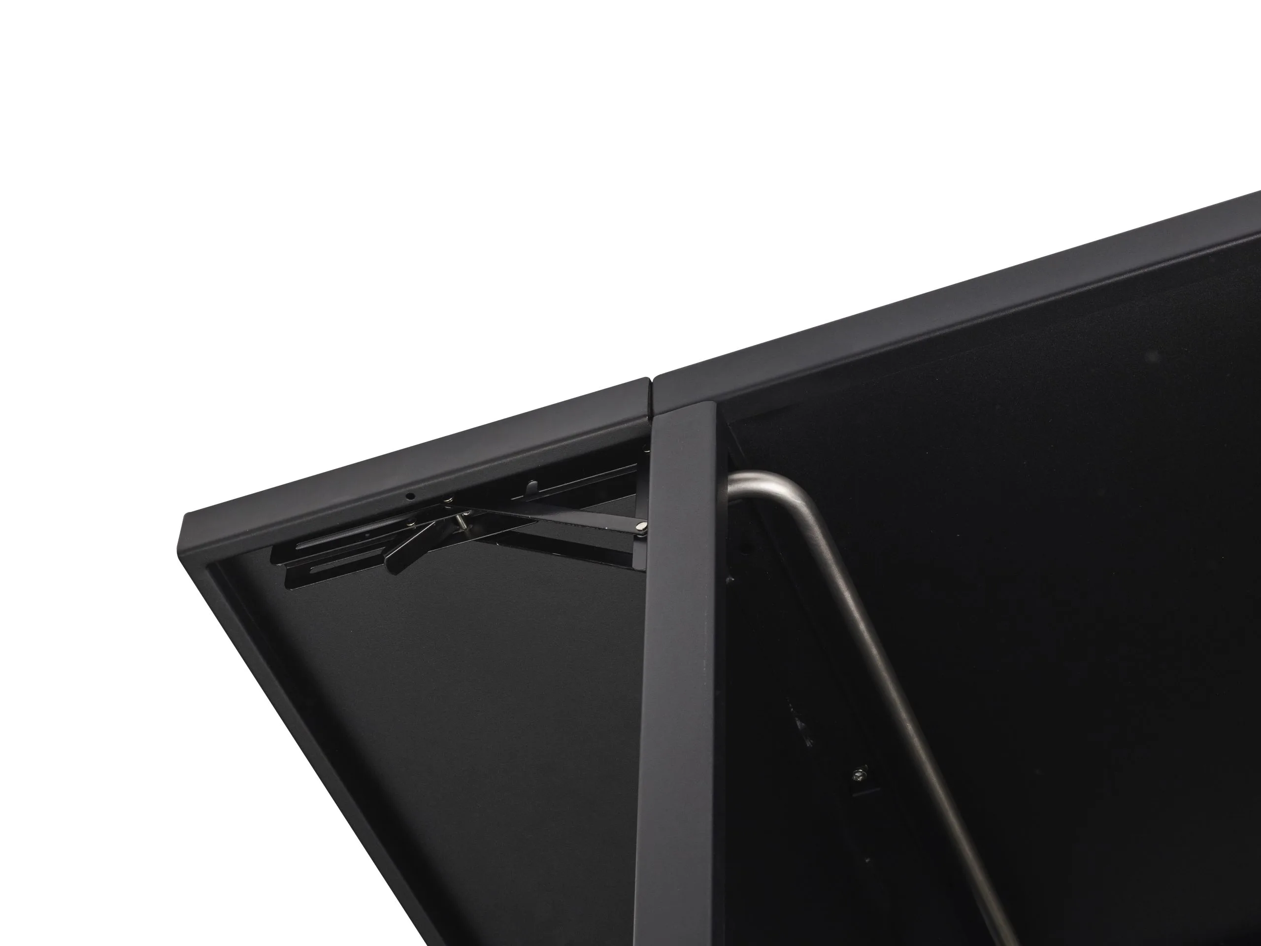 Bordpladen er hængslet på bordet og kan nemt klappes ned, når den ikke er i brug. Når pladen er monteret på bordet, skal bordets side-/værktøjsbøjle i rustfrit stål monteres på indersiden af bordet og bibeholder derved funktionen som værkstøjsholder.