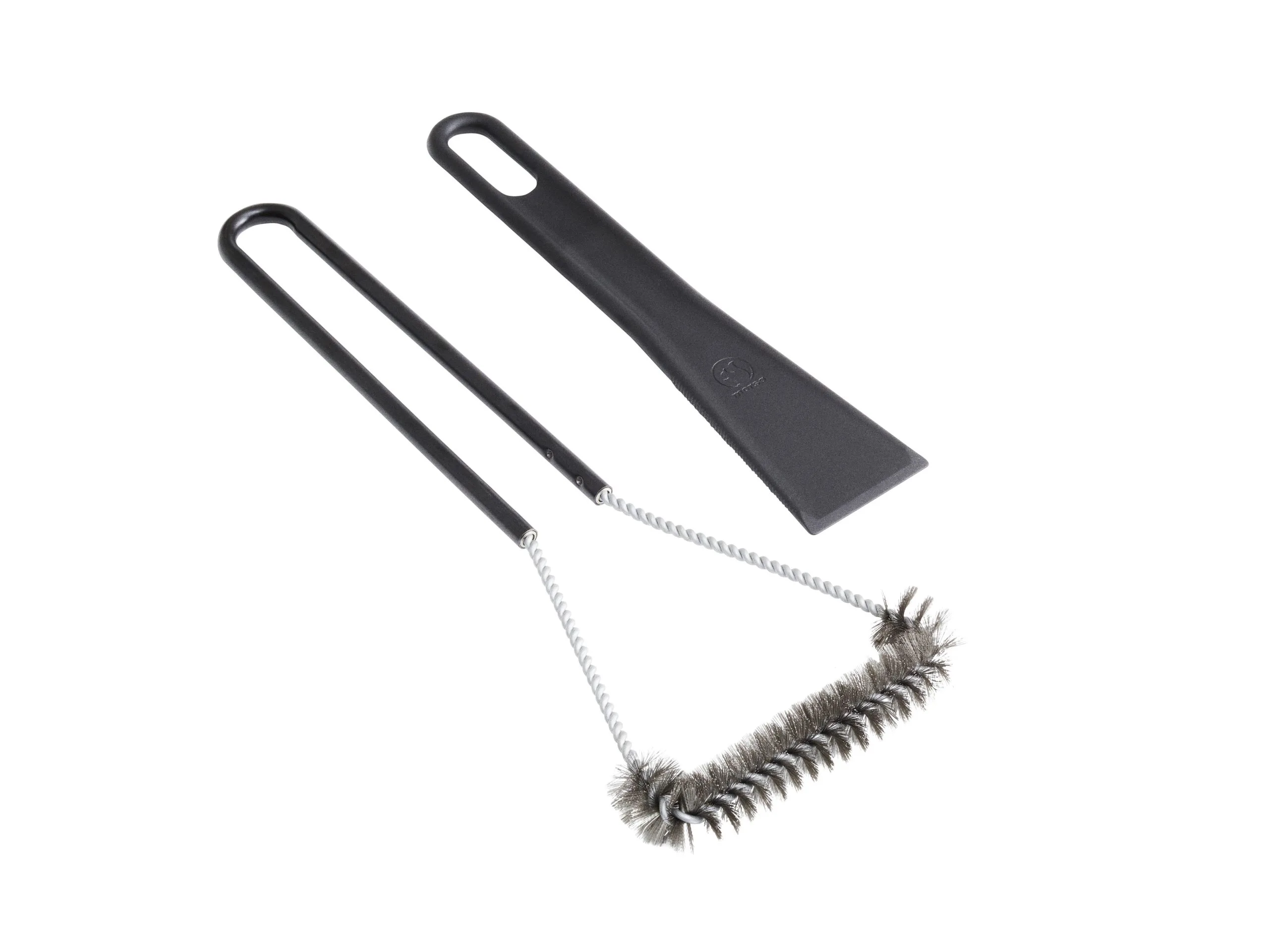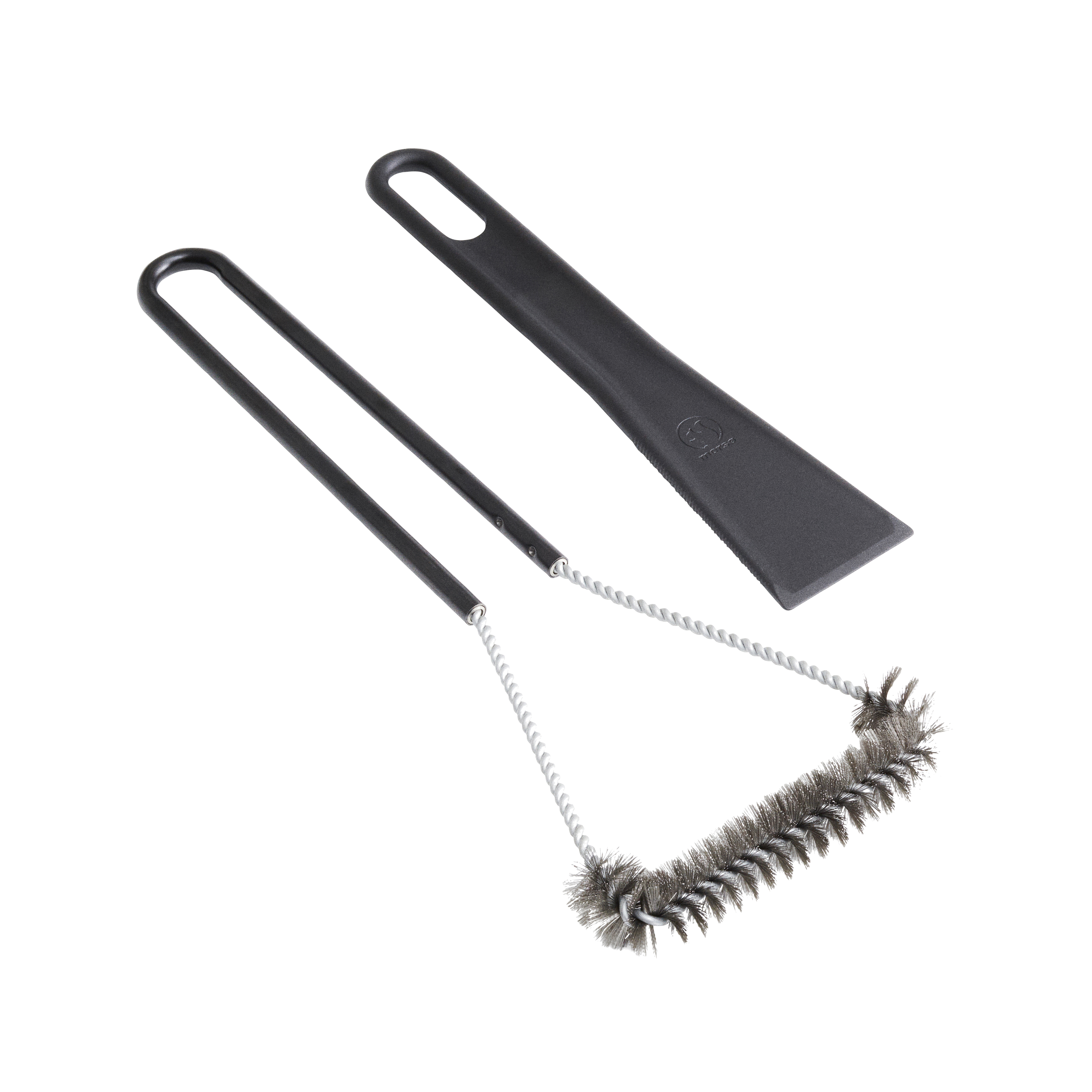 Grillbørste- og skrabersæt som gør det nemt at holde grillristen ren. Skraberens skarpe kanter fjerner effektivt mad- og fedtrester fra grillristens overflade, imens grillbørsten er god til at fjerne det sidste snavs mellem ristene.