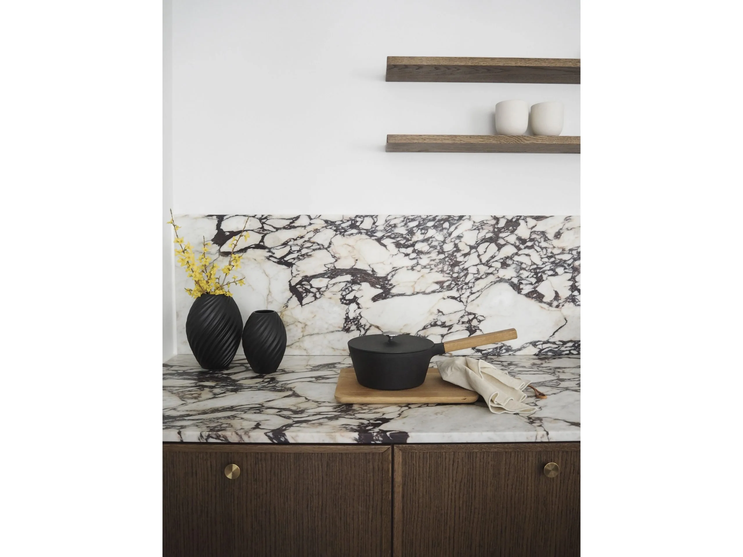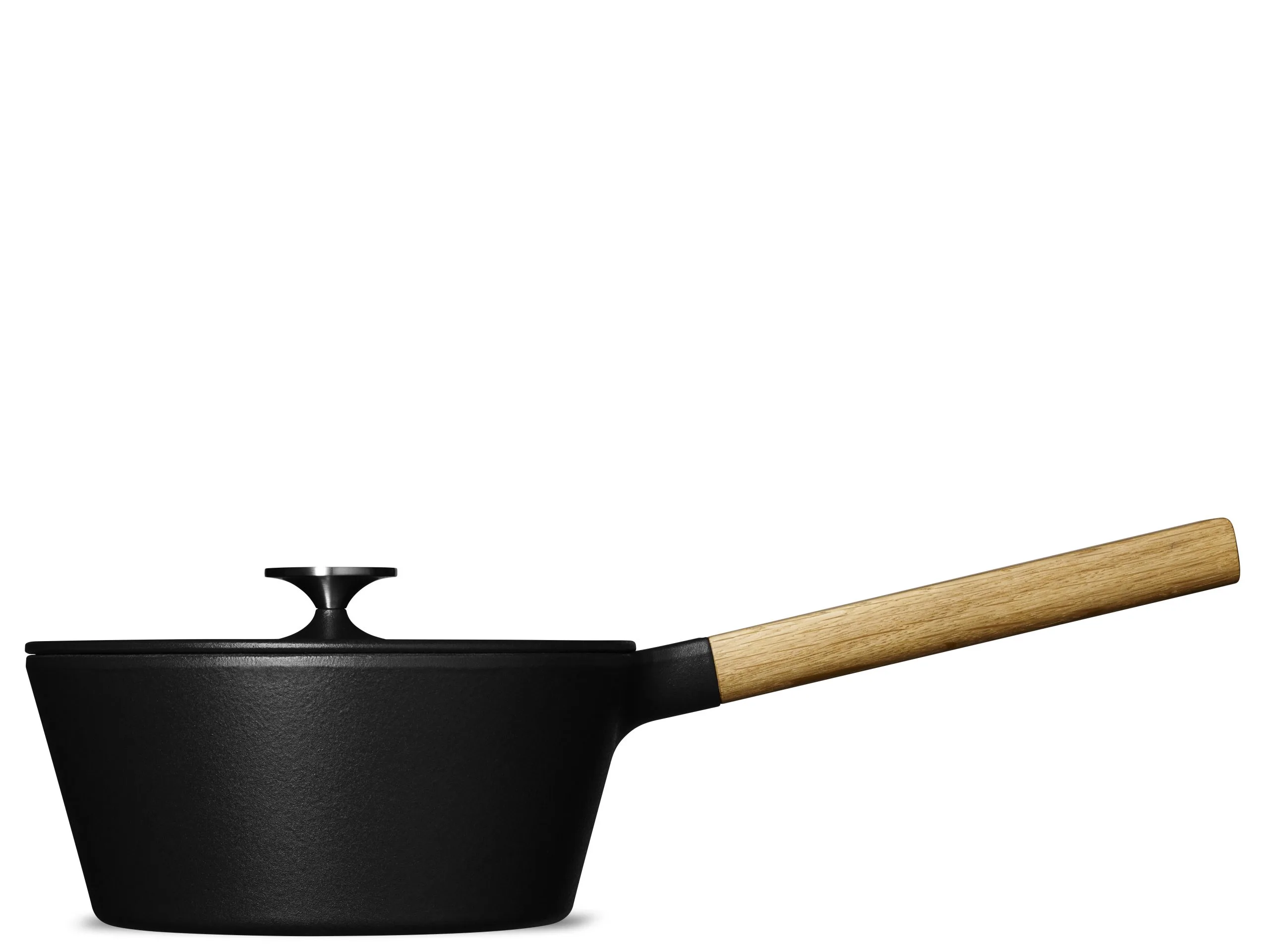 Morsø NAC Kasserolle med låg 1,7 l. Fremstillet i sortemaljeret støbejern, knop i rustfrit stål og greb i olieret eg. 5,5 mm bund sikrer en god og ensartet varmefordeling. Velegnet til alle varmekilder. Ikke egnet i ovn og grill. Dia. 20,5 x 9 cm.