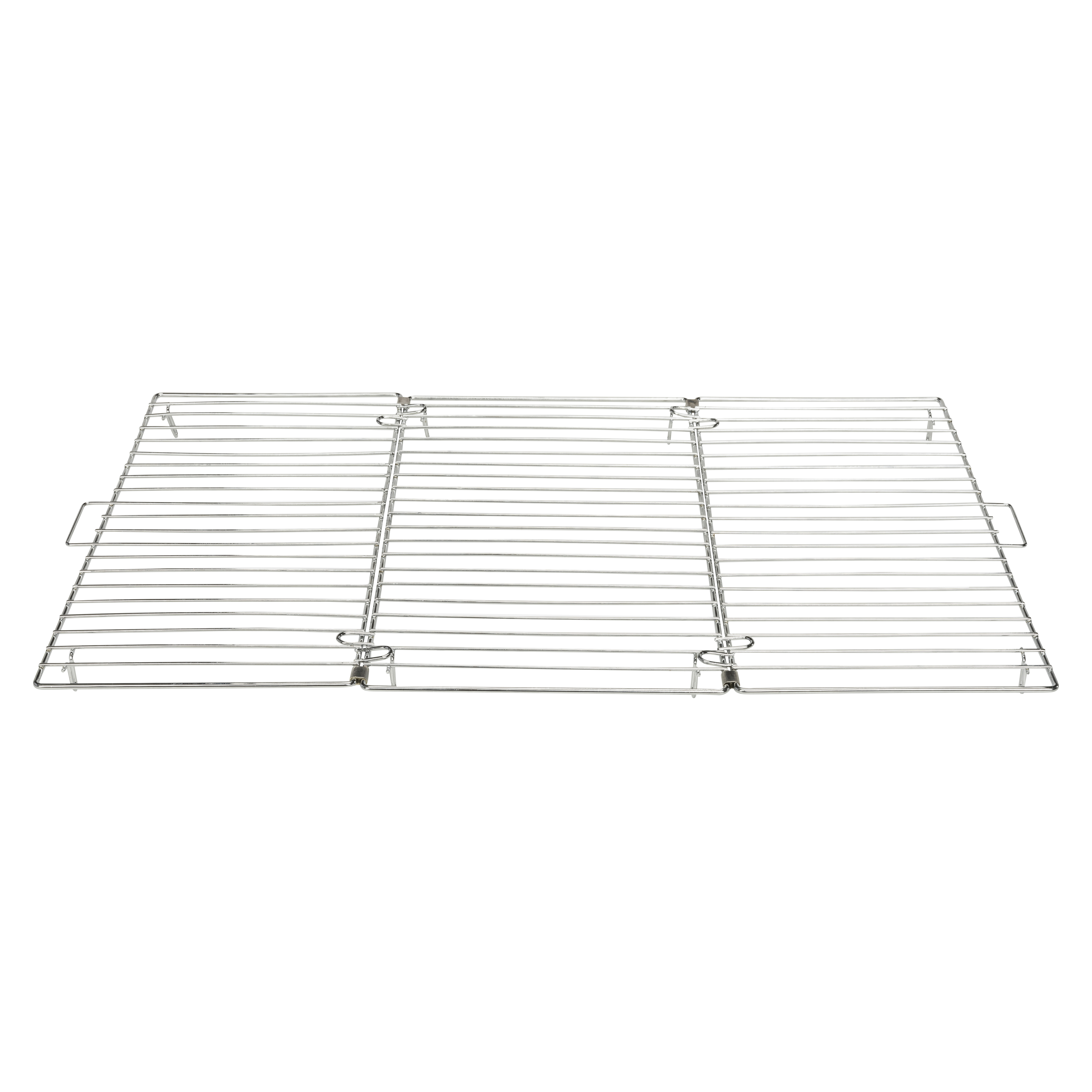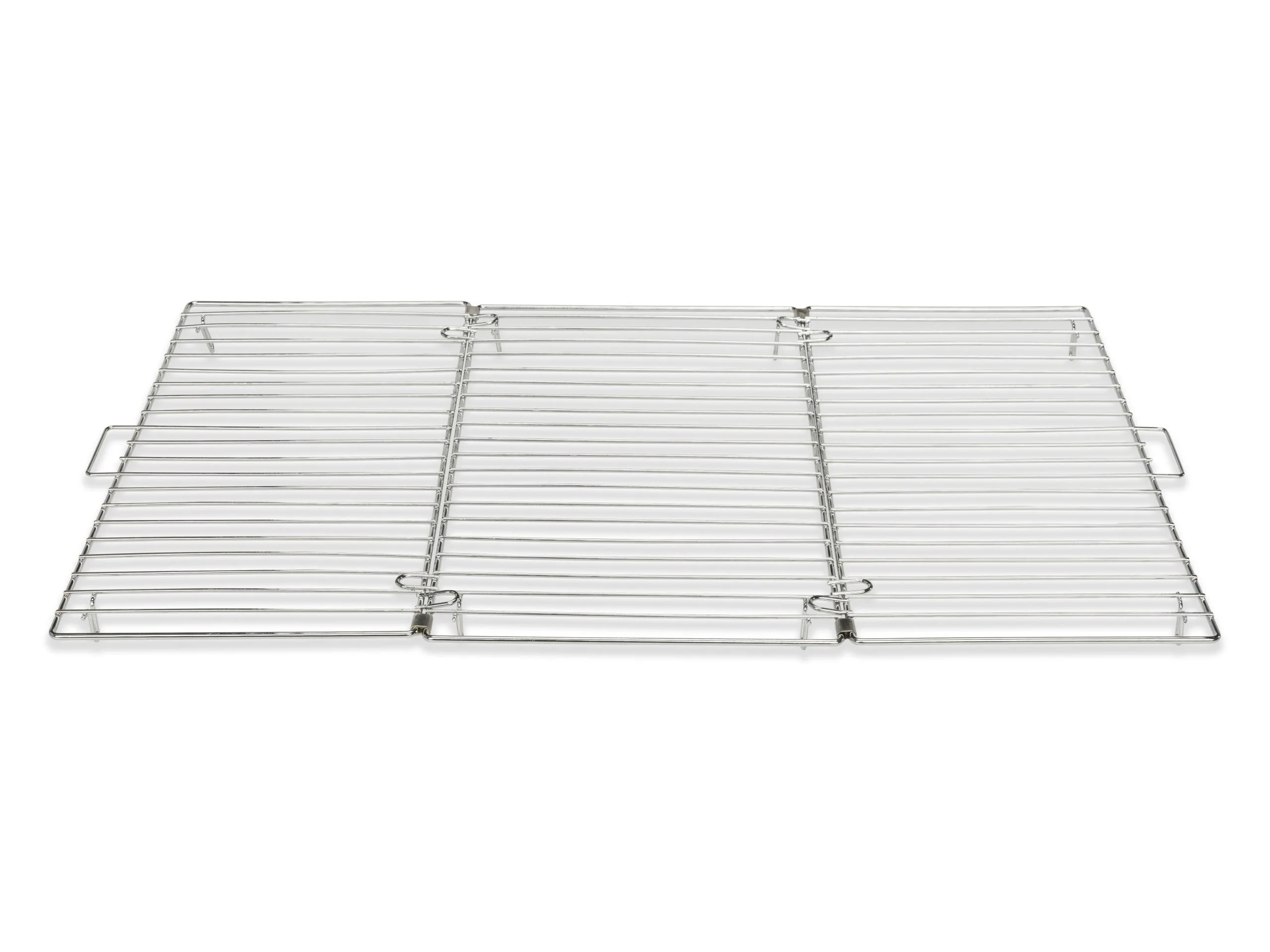 Foldbar bagerist i rustfrit stål. Tåler temperaturer op til 300 °C. Foldet ud kan den rumme store mængder bagværk, og foldet sammen fylder den næsten ingenting, hvilket gør den let at opbevare. Længde 46/18 cm. Bredde 32 cm.