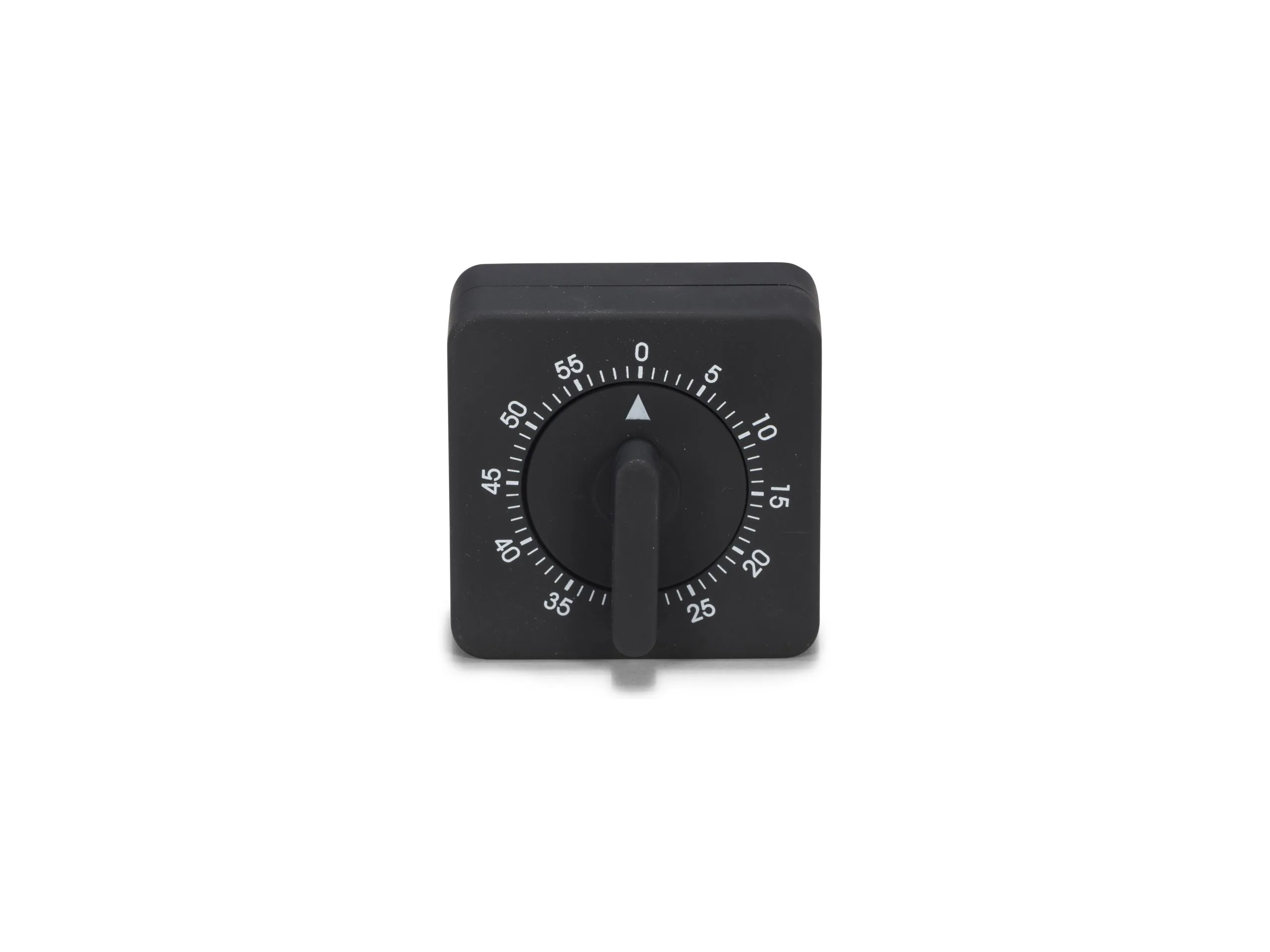 Kvadratisk minutur med manuelt optræk. Perfekt til at holde styr på tiden under madlavningen. Timeren kan sættes fra 1 til 60 minutter.