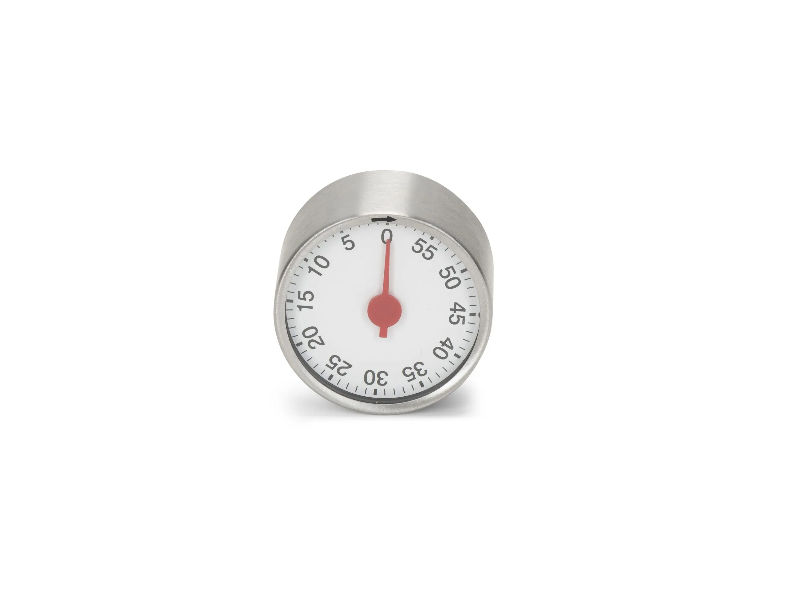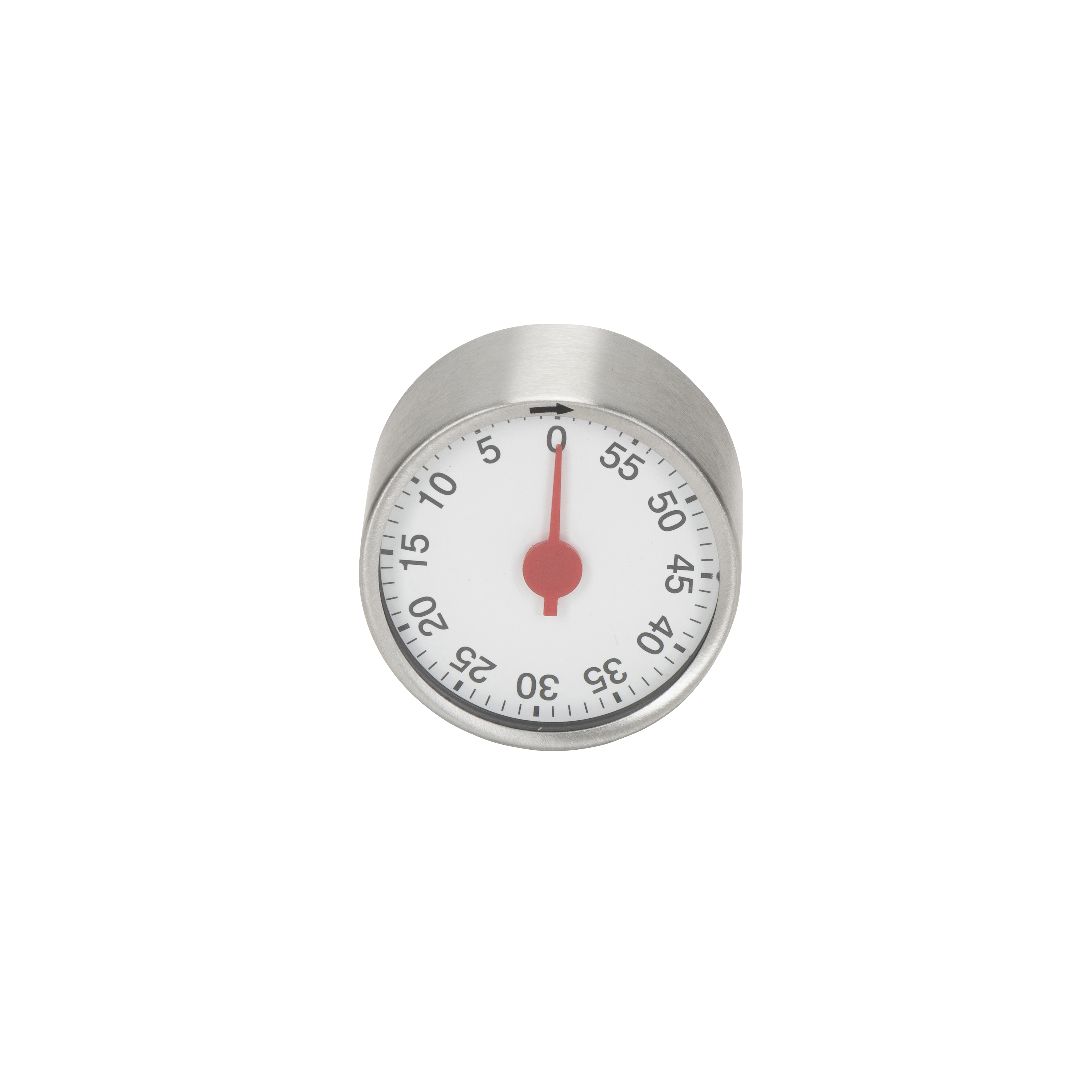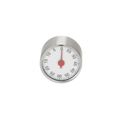 Rundt minutur i stål med manuelt optræk. Perfekt til at holde styr på tiden under madlavningen. Uret har en praktisk magnet på bagsiden, så du kan hænge det op på køleskabet eller emhætten. Timeren kan sættes fra 1 til 60 minutter.