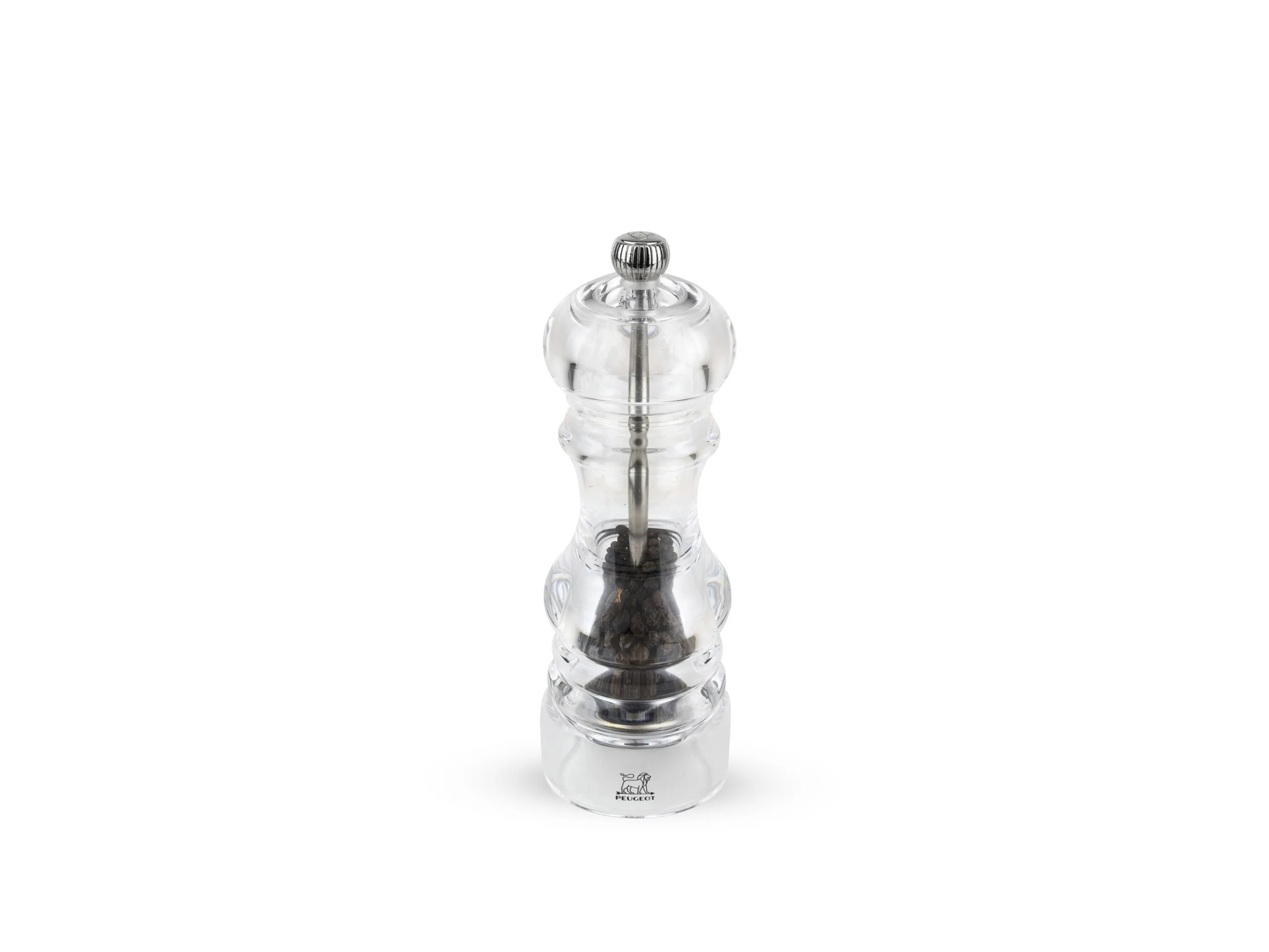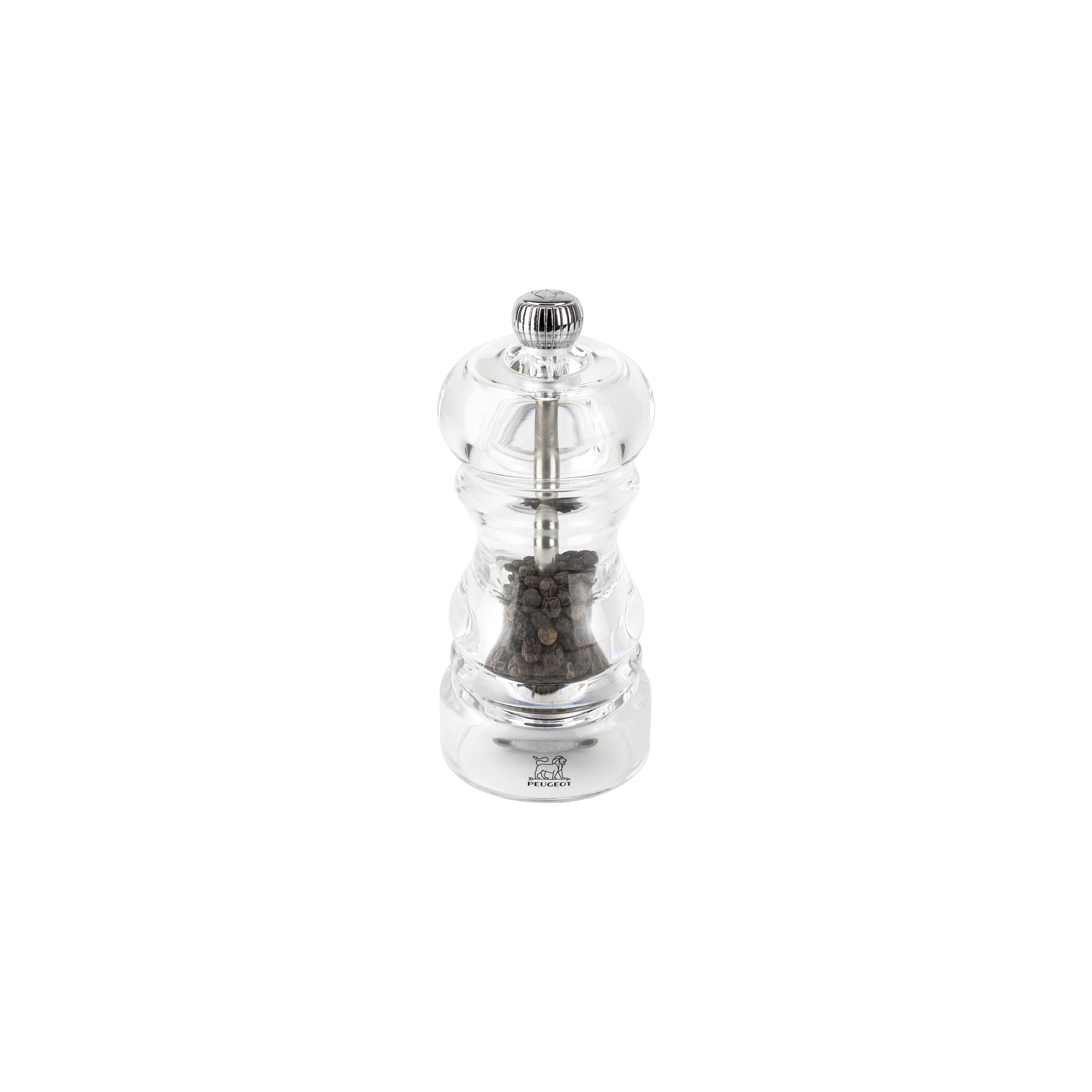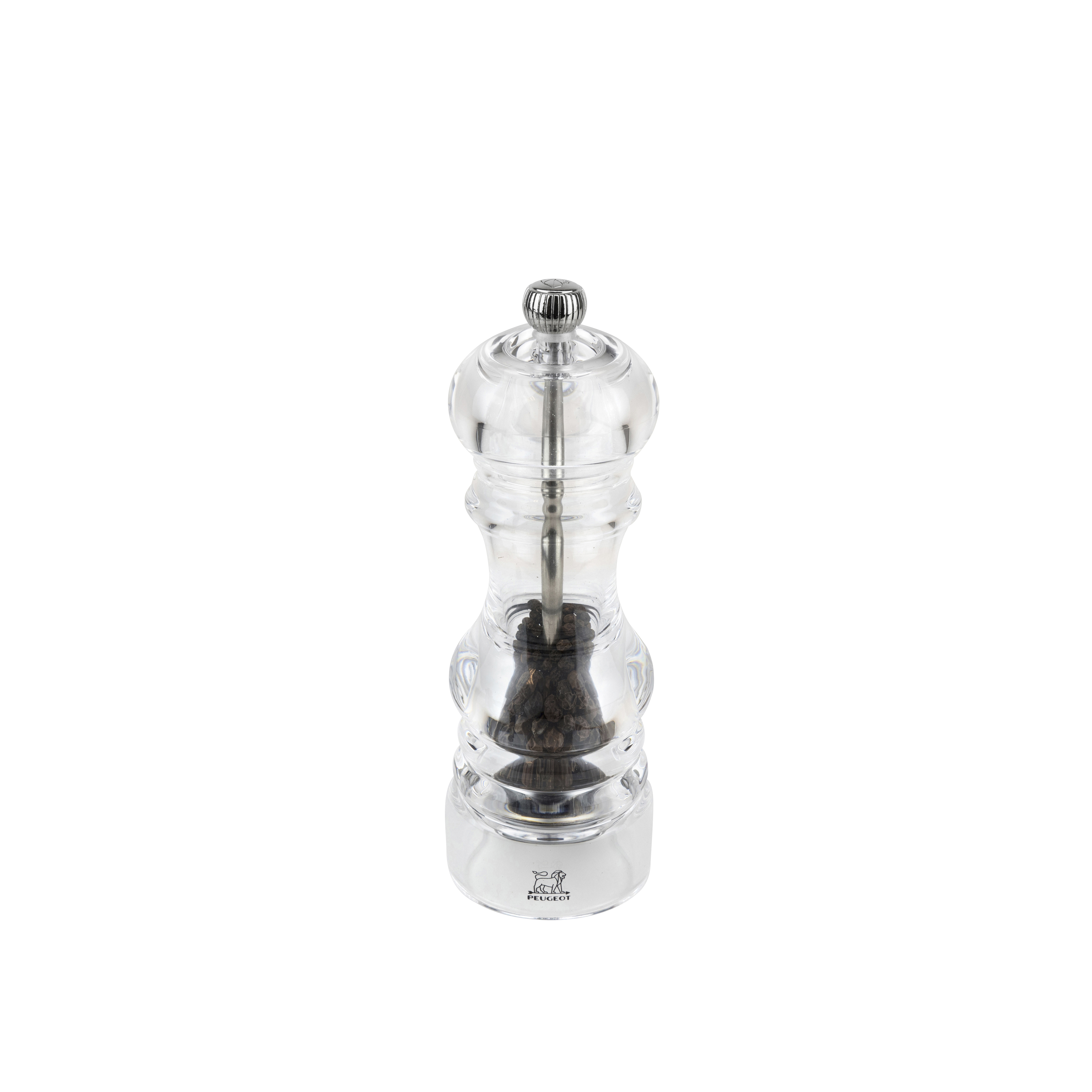 Kværn med klassiske, tidløse linjer i fuldstændigt transparent design med Peugeots verdenskendte kværnmekanisme.