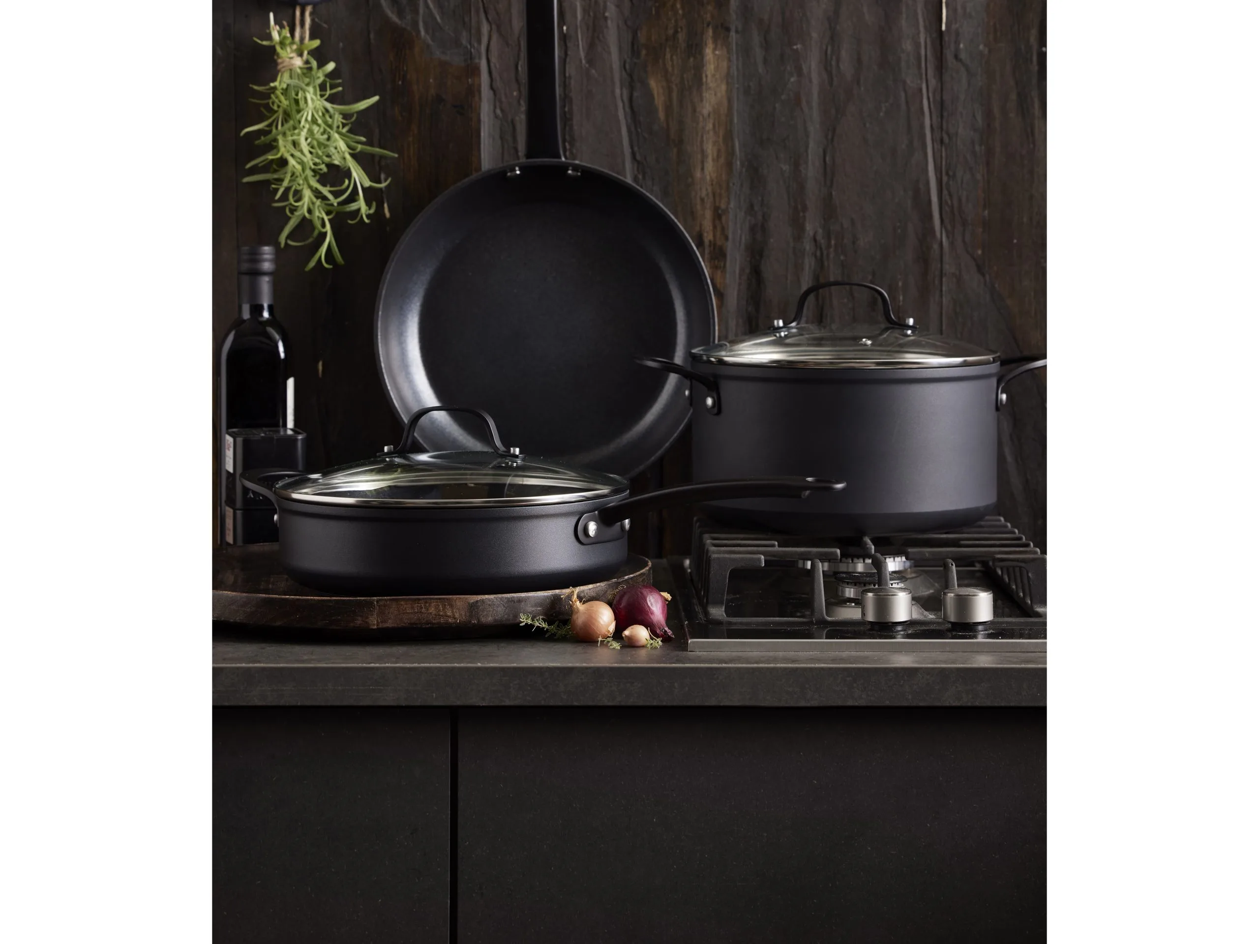 Arc er med sin mørke silhuet en moderne og funktionel tilføjelse til køkkenet. Fremstillet af anodiseret aluminium, der er ekstra tyk i bunden, giver dig fuld kontrol over madlavningen med en ensartet og fremragende varmefordeling. Den effektive non-stick-belægning er forstærket med diamond-effect titanium, der gør den ekstremt ridsefast. Perfekt til intensiv brug i køkkenet med sine fremragende og hårdføre non-stick egenskaber.