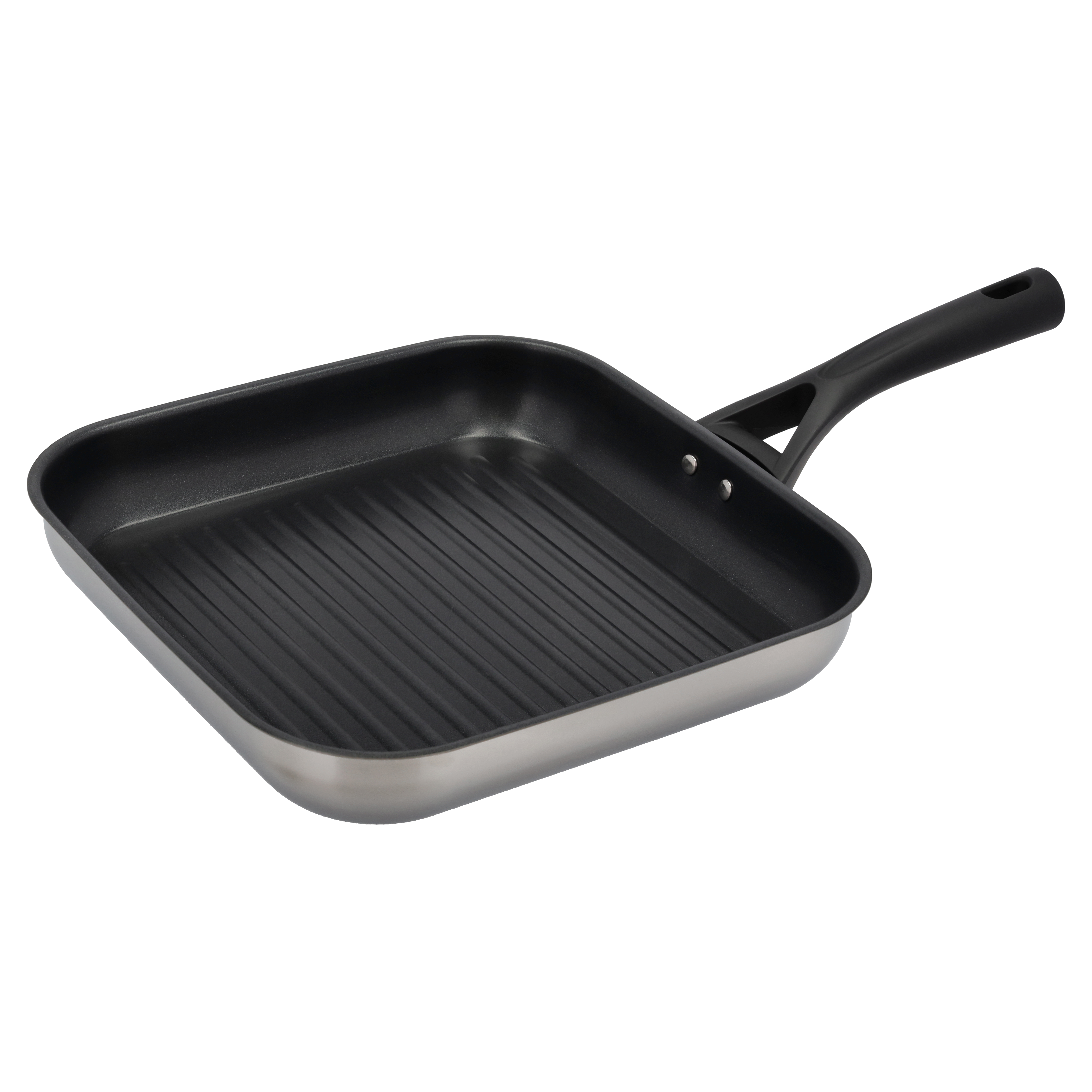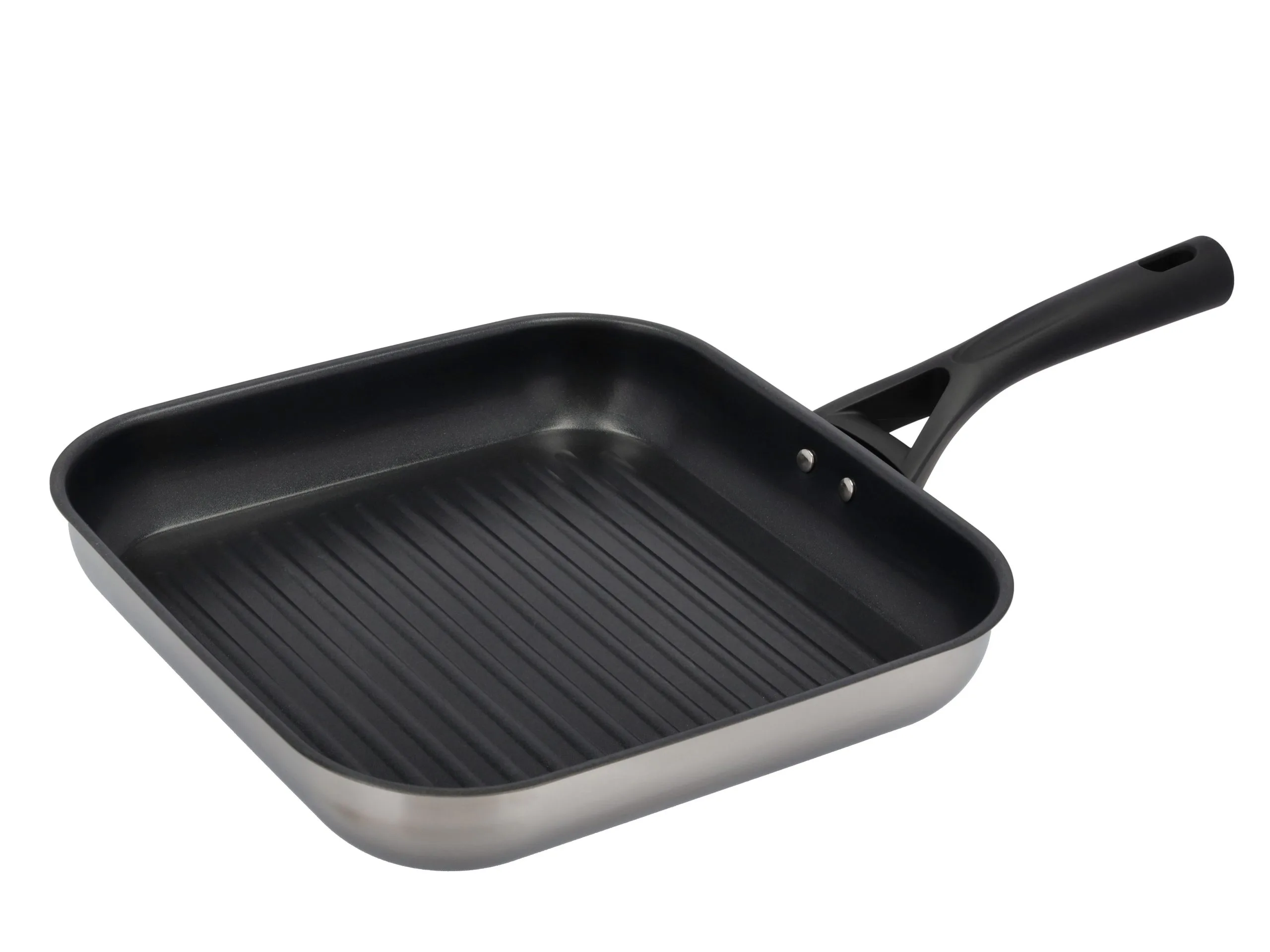 Expert Touch grillpande, 28 cm, i rustfrit stål med non-stick belægning og et håndtag, der ligger godt i hånden. Pandens 3-lags bund giver en god varmefordeling. Tåler ikke ovn og mikroovn. Velegnet til induktion, gas, el og keramiske kogeplader. 10 års garanti.