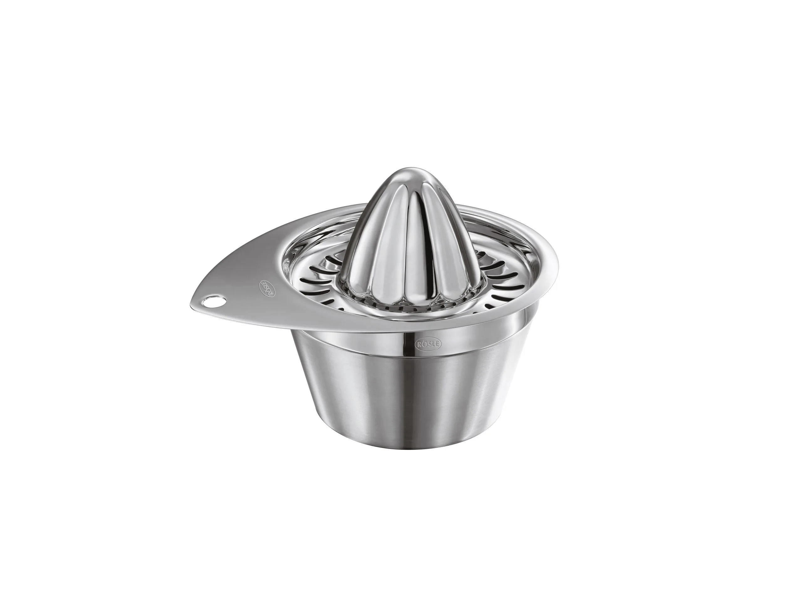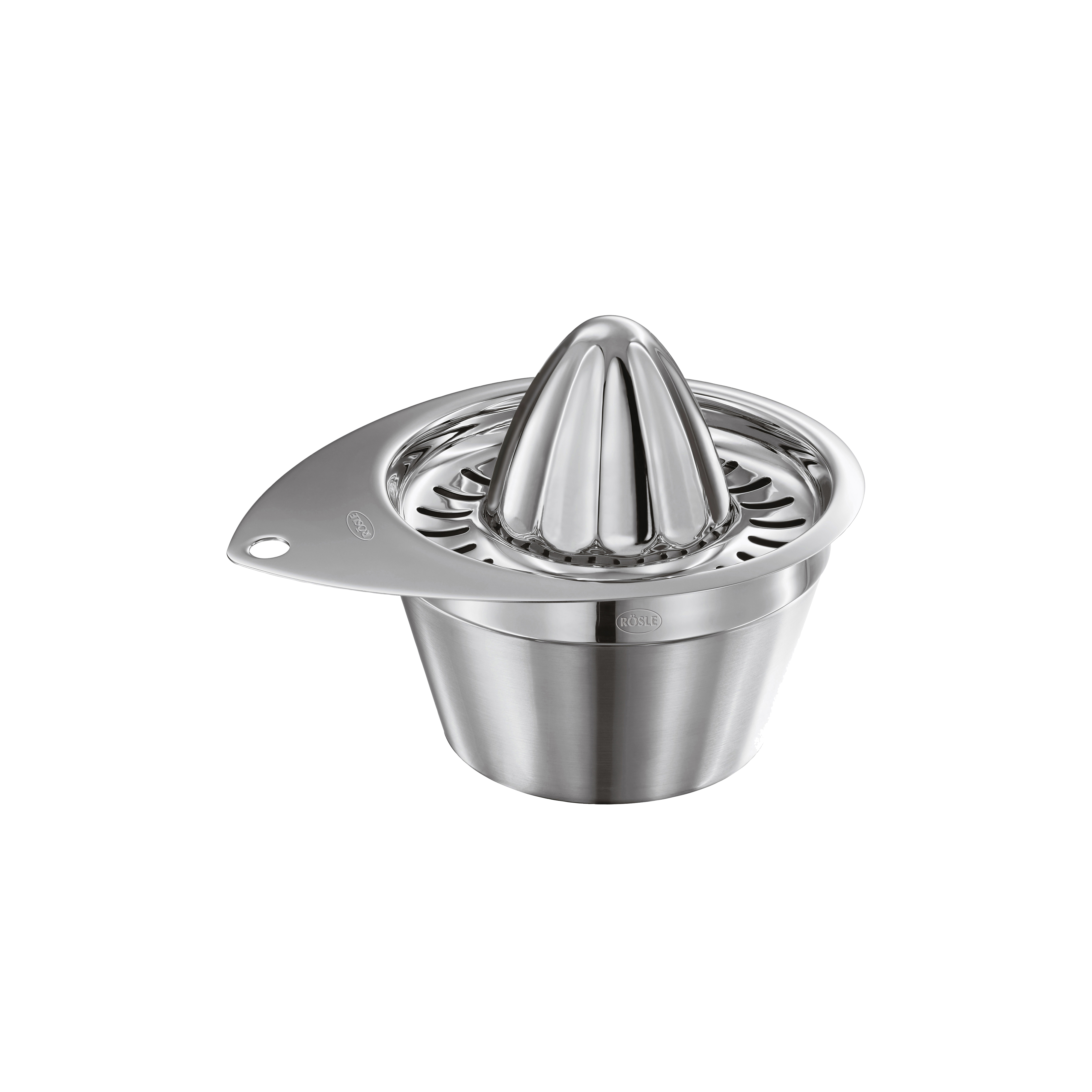 RÖSLE citruspresser er skabt til at få hver en dråbe saft ud af citrusfrugter uden at tilstoppe. Med hældekant. Tåler opvaskemaskine.