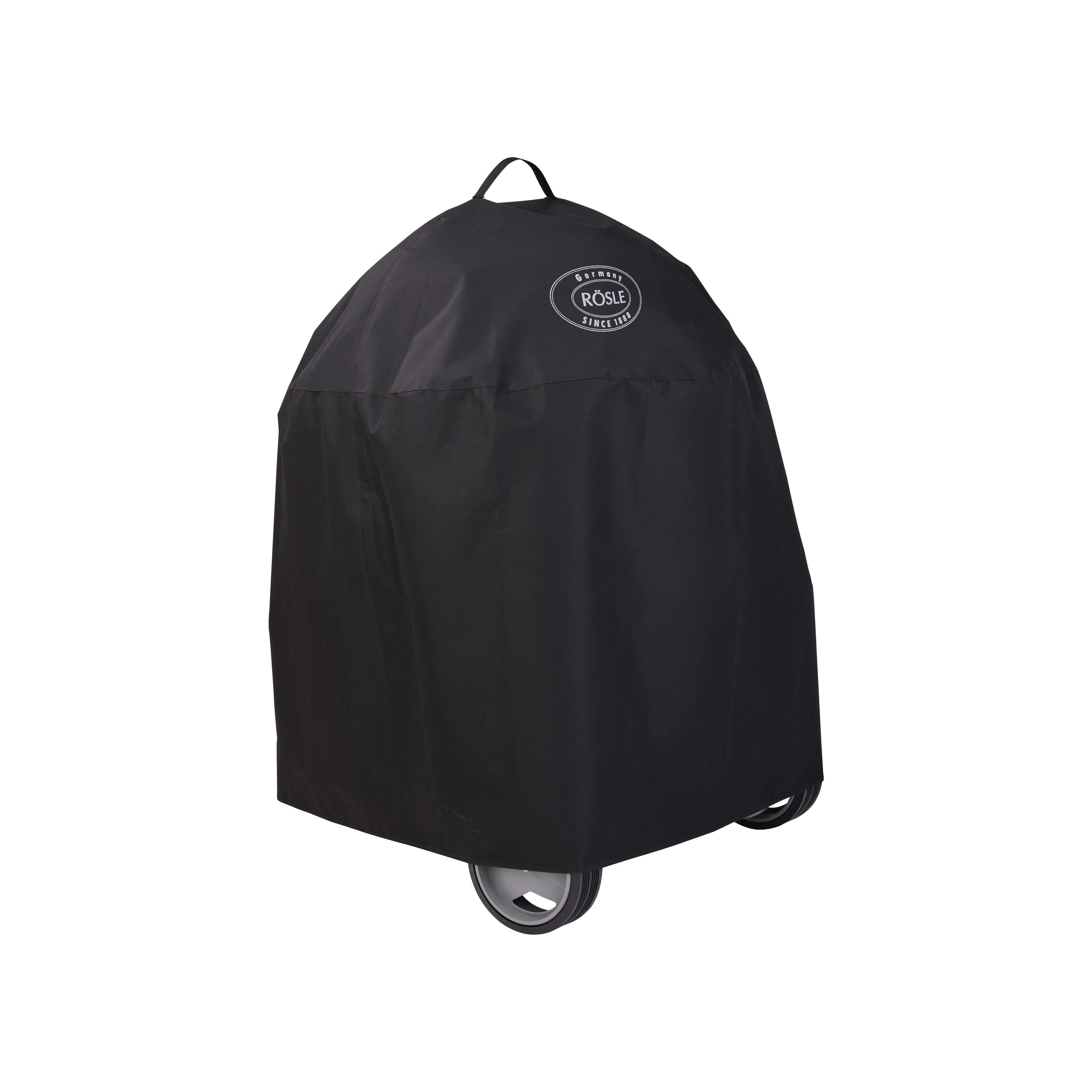 Det sorte, vandtætte grillcover er designet til at passe til Rösles kulgrill No.1 F60 Air. Coveret har velcrolukning til fastgørelse på grillrammen.