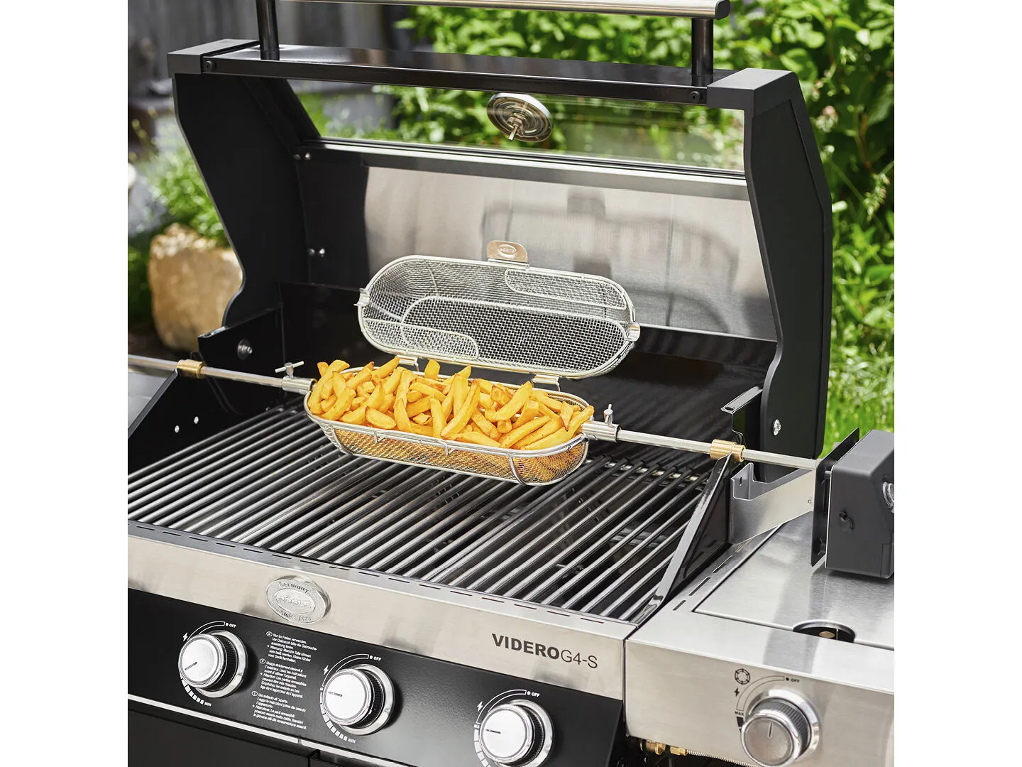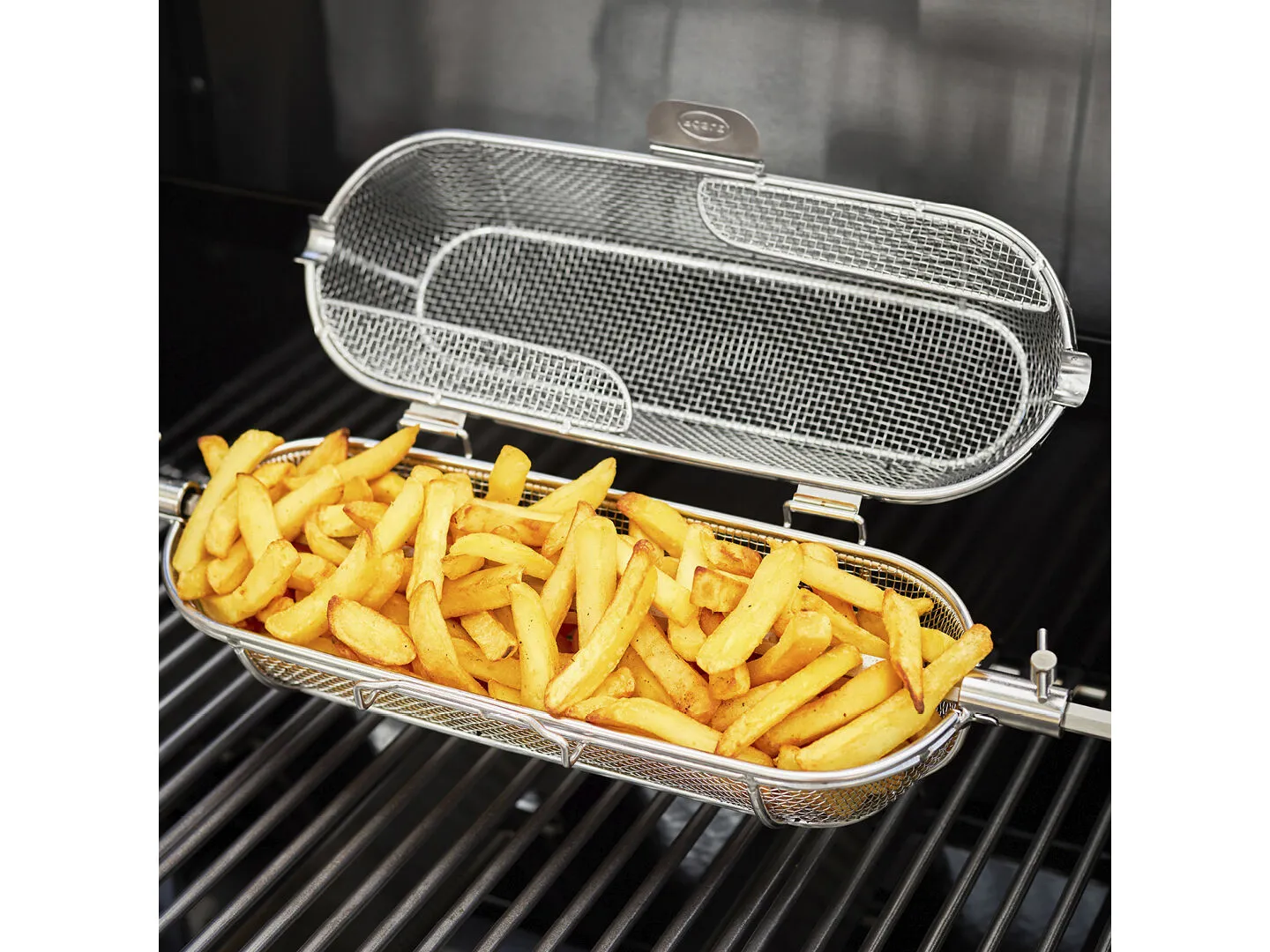 Kurv til montering på Videro rotisseri. Med en rotisserikurv kan du nemt lave alt fra sprøde pomfritter og møre grøntsager til saftige skaldyr og lækre popcorn på grillen. Og med det fine trådnet i rustfrit stål er du garanteret, at maden bliver tilberedt jævnt.