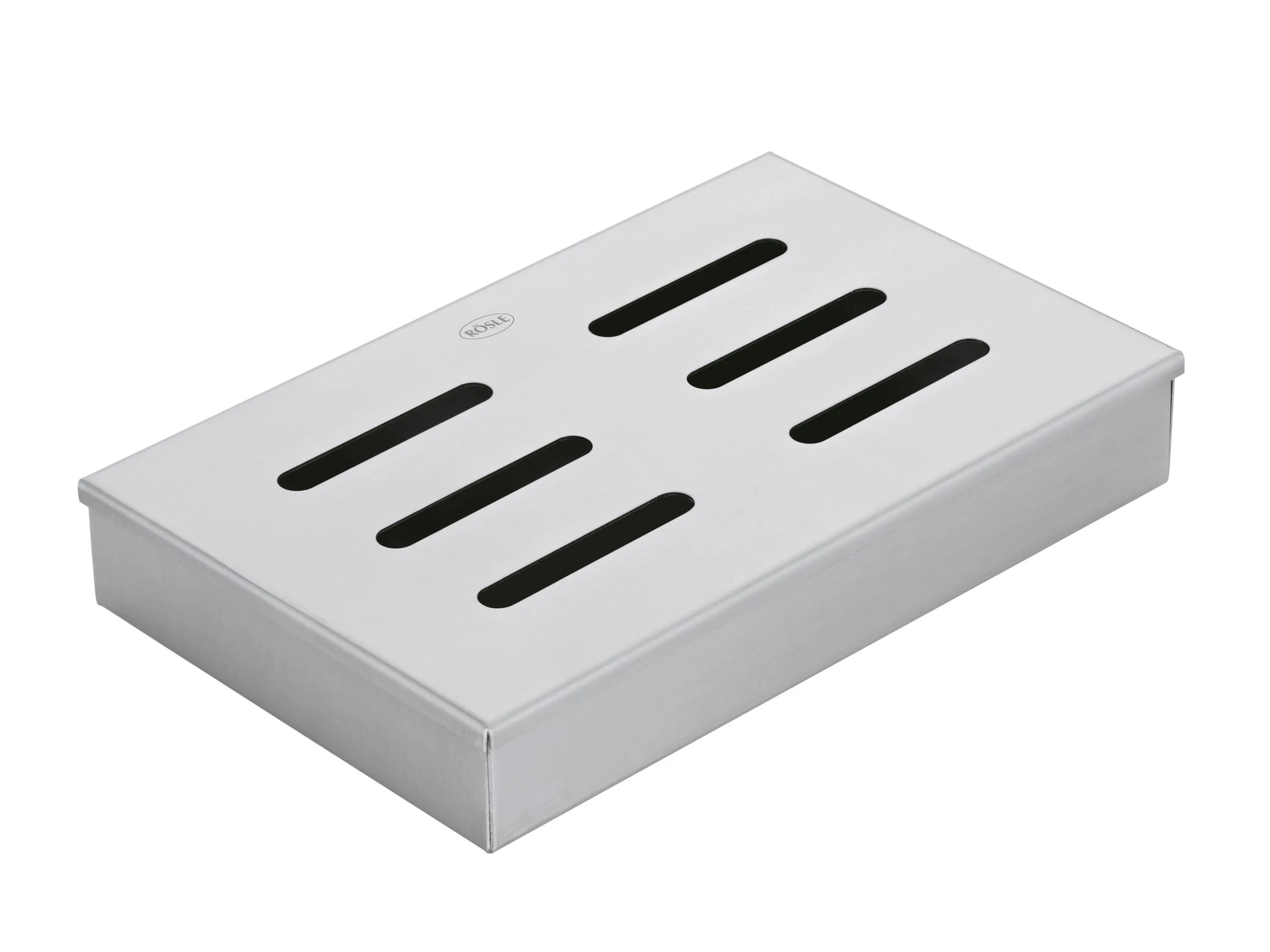 Røgboks med låg i rustfrit stål. Til rygning på grill og kulgrill. Giver kødet en røgfyldt, aromatisk smag. Kan bruges med flis, træpiller og røgsmuld.