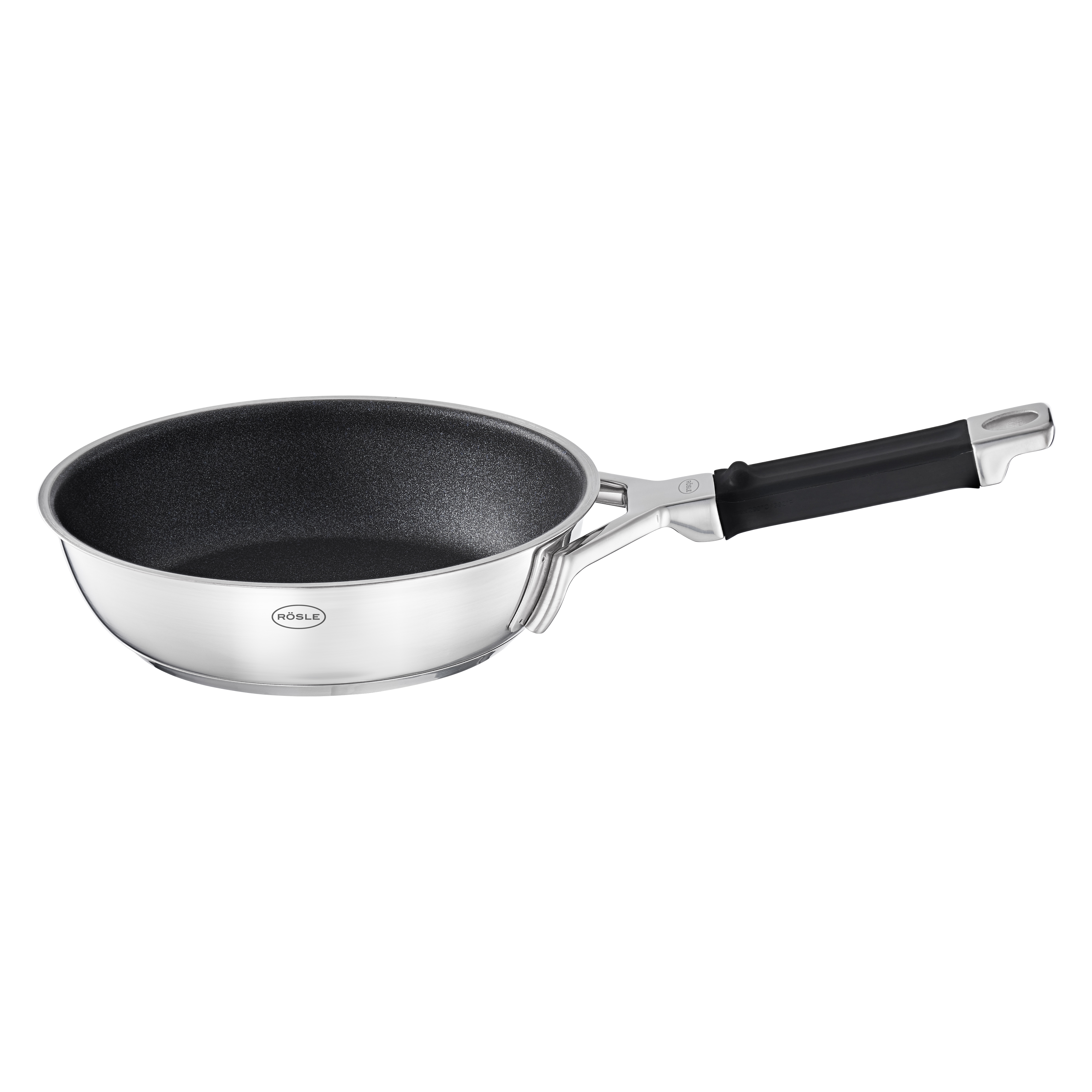 RÖSLE Silence Pro non-stick stegepande (dia. 20 cm) til perfekt tilberedning af alle dine favoritretter! Robust og nem at rengøre – en allround stegepande til kød, fisk, grøntsager, pandekager og meget andet. Du kan tilmed bruge køkkenredskaber i rustfrit stål på den ekstremt hårde belægning.