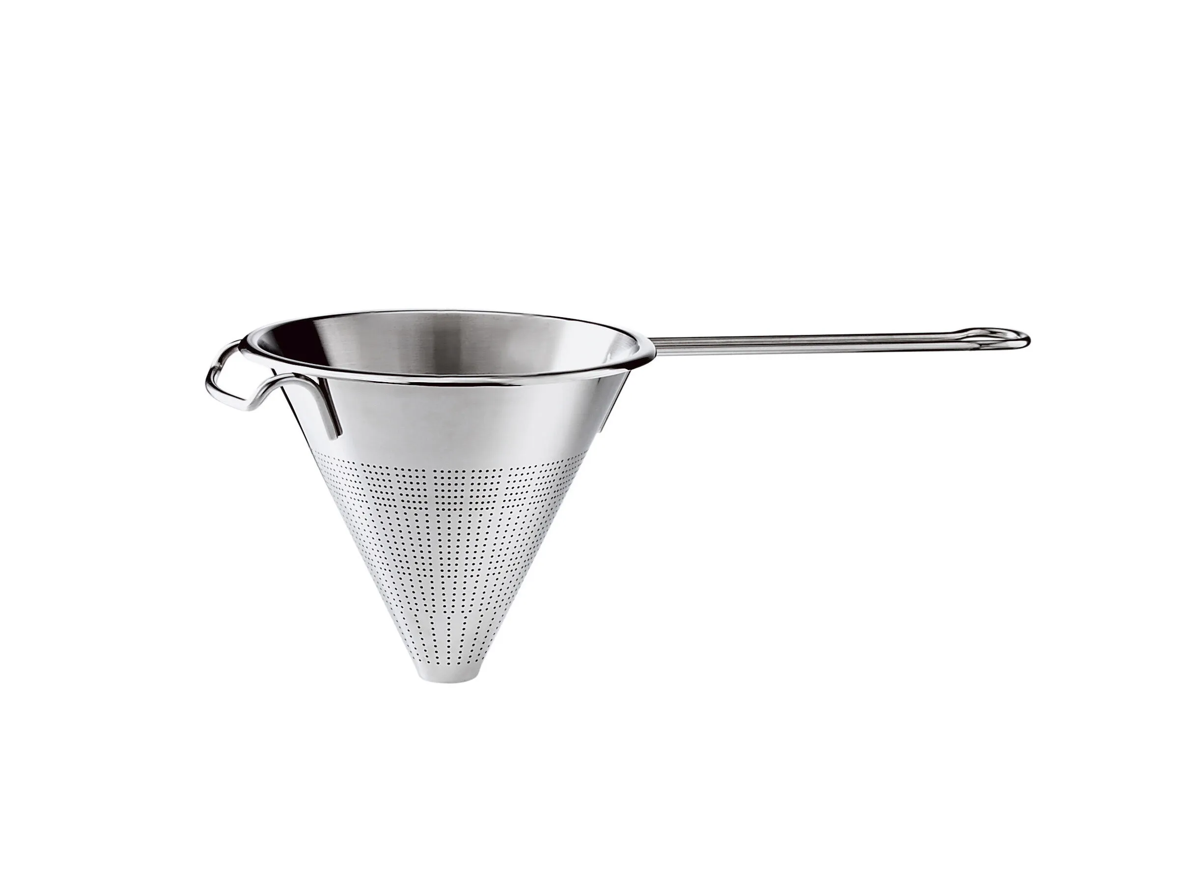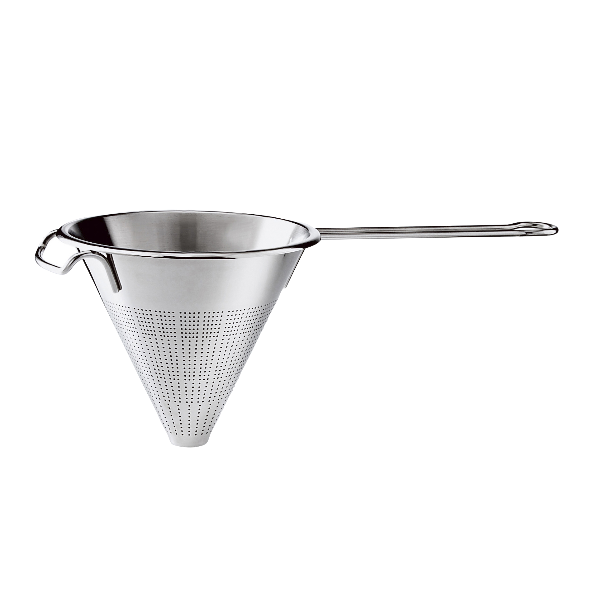 RÖSLE spidssigte til at si saucer, supper og til hurtig opvarmning eller til at skylle. Spidssigten er meget fint perforeret med robuste håndtag.