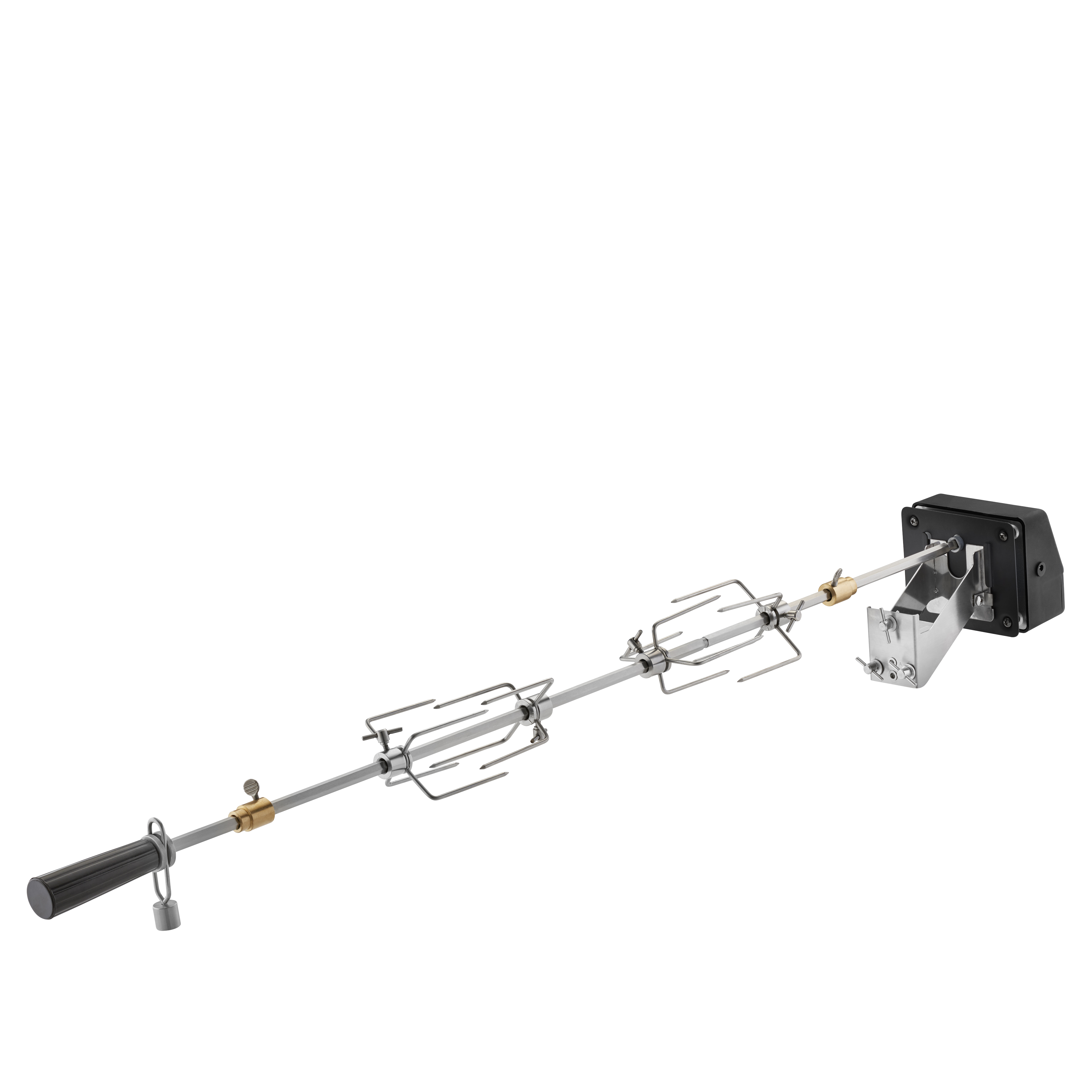Sekskantet spyd af massivt rustfrit stål kan holde en vægt på op til 10 kg. 4 robuste holdere til at fæstne kødet. Inkl. elmotor med strøm eller batteridrift. Strømforsyning 220V / 50 Hz til elmotor inkluderet. Velegnet til følgende modeller: MAGNUM G4, VIDERO G4 / G6 modeller.
