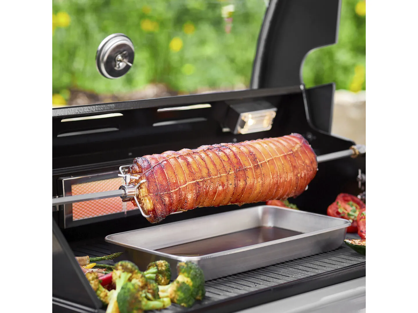 Rotisserie til tilberedning af kylling, spidsteg, gyros osv. Rotationshastigheden på ca. 3 omdrejninger pr. minut fordeler safterne jævnt og efterlader kødet sprødt udvendigt og saftigt indeni.