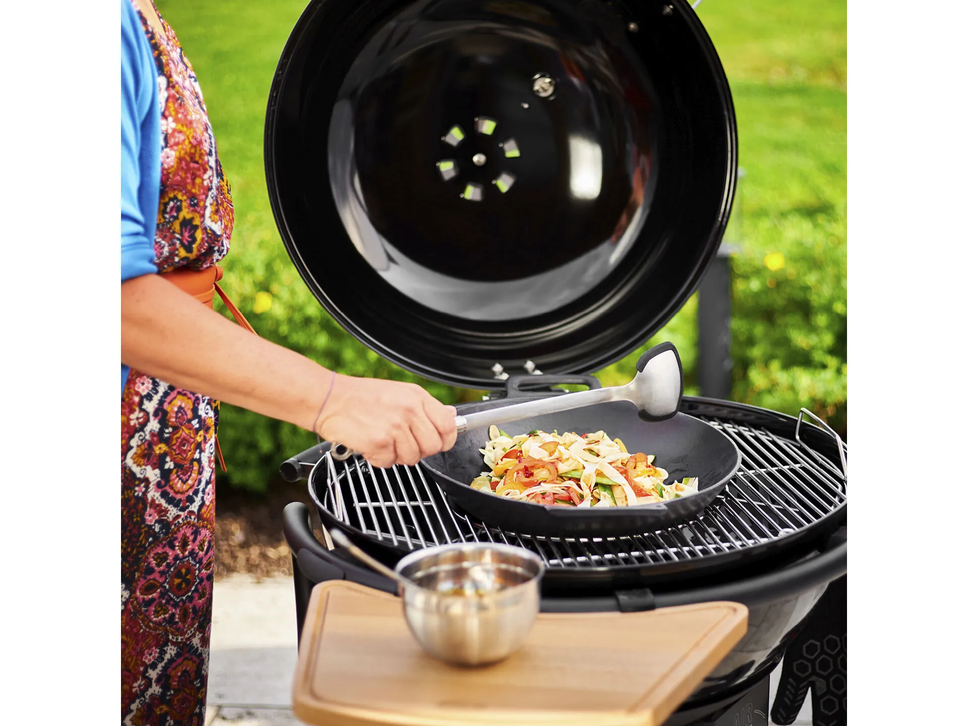 Den flade wokbase er også velegnet til kogeplader i køkkenet og passer til alle komfurtyper, også induktion.