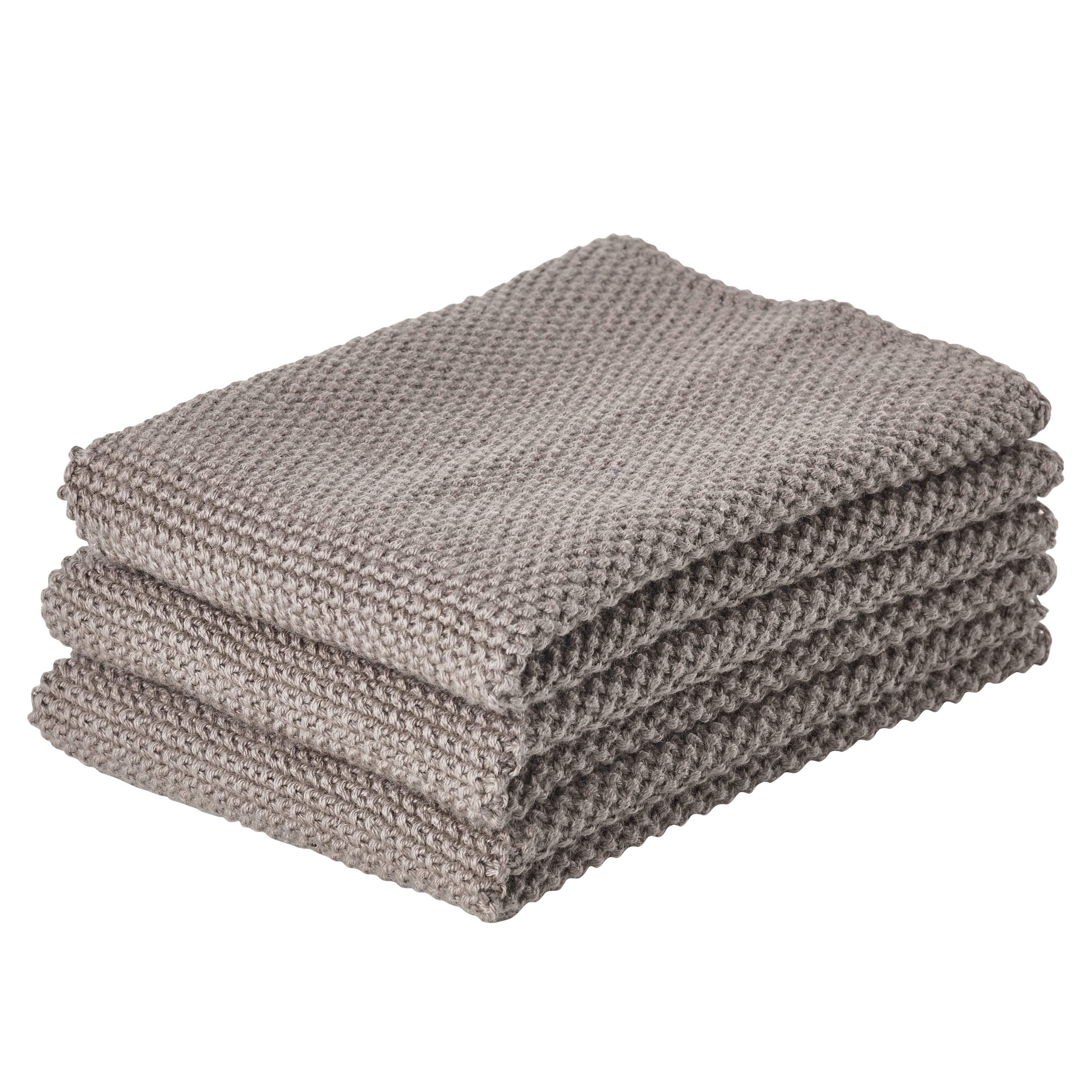 Zones strikkede karklude i 100 % bomuld er helt igennem naturlige – dejligt bløde, praktiske, stærke og uden skyggen af kemikalier og mikroplastik. De er uundværlige i køkkenet, og de fås i bløde sæt med 3 stk. 27 x 27 cm.