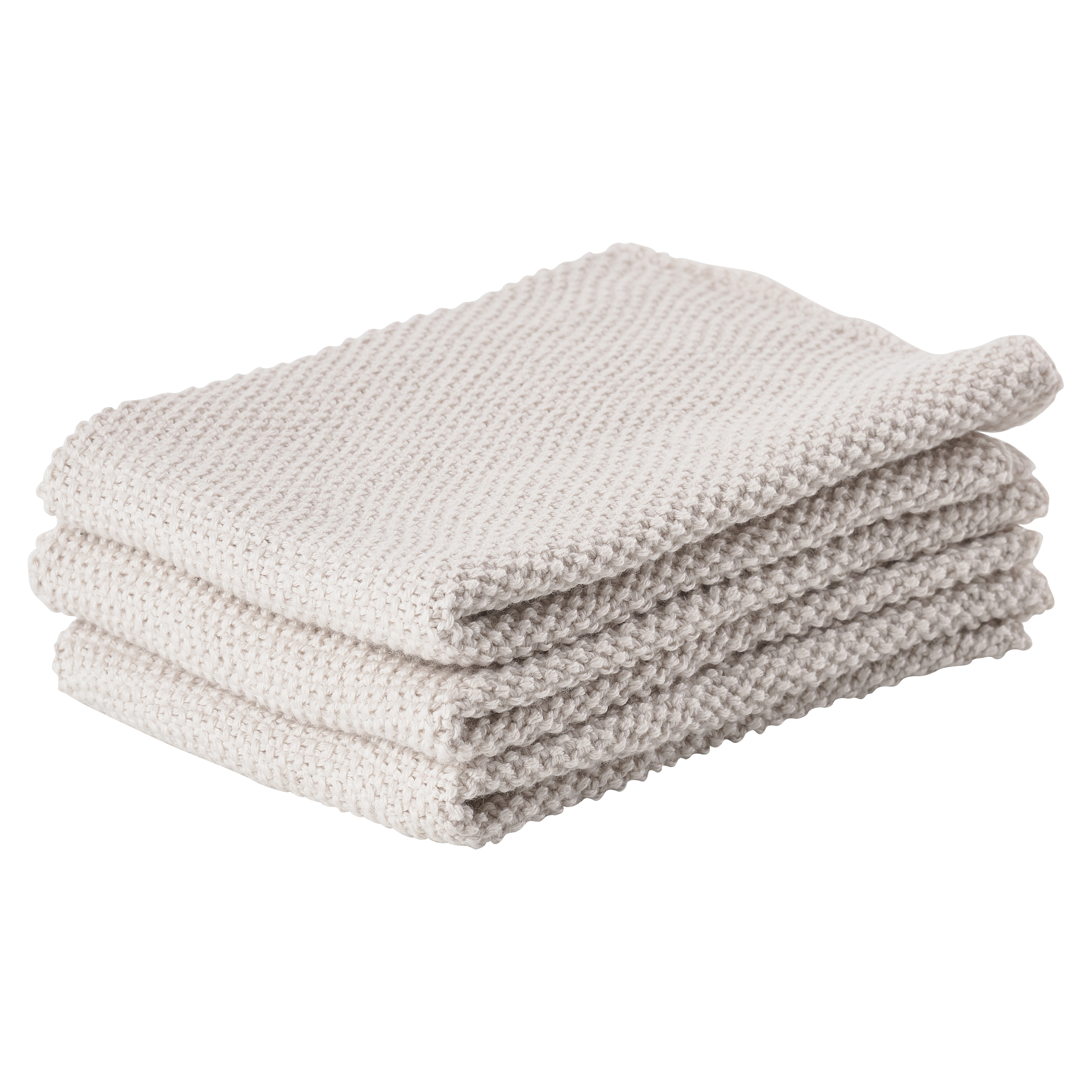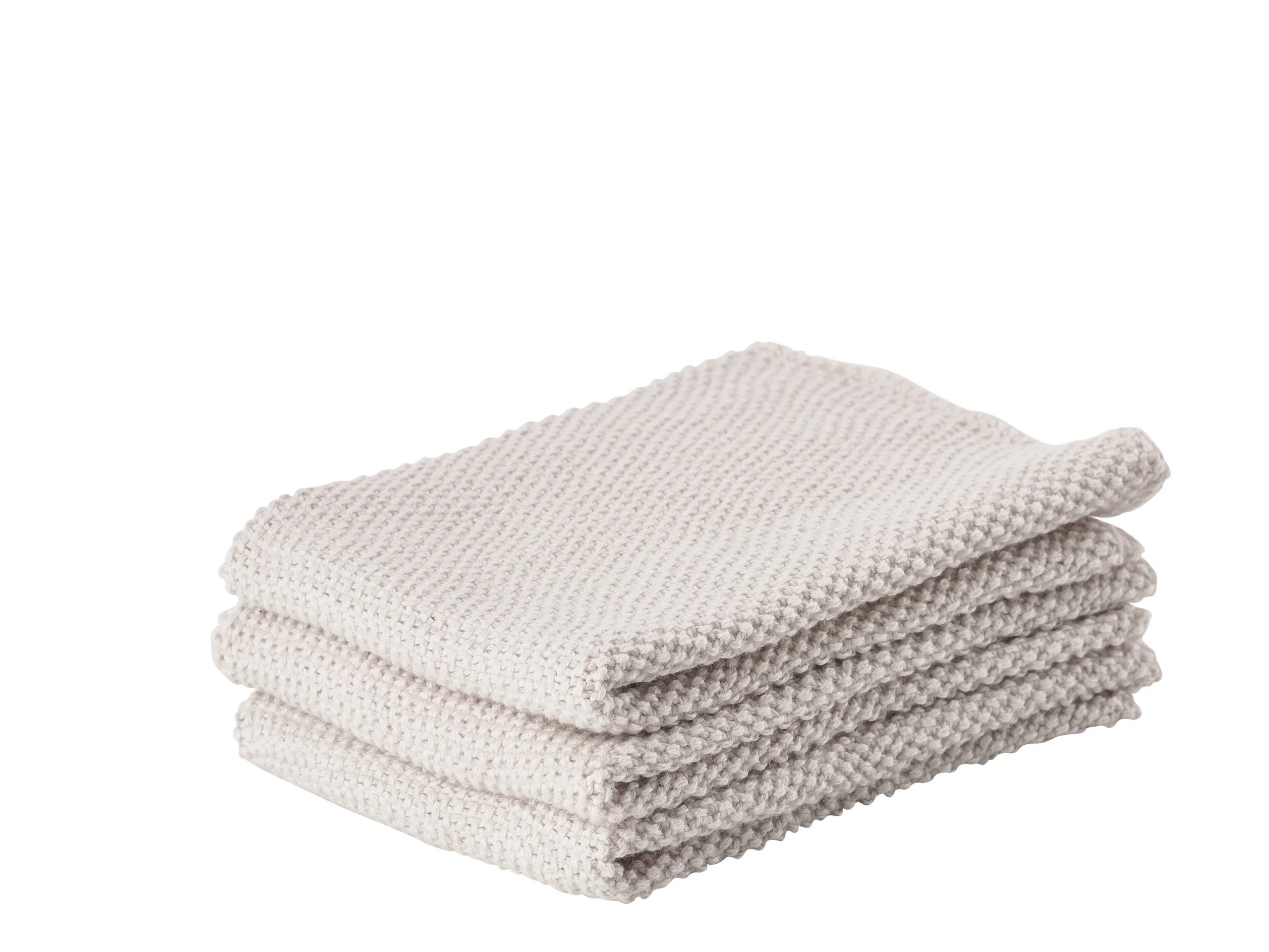 Zones strikkede karklude i 100 % bomuld er helt igennem naturlige – dejligt bløde, praktiske, stærke og uden skyggen af kemikalier og mikroplastik. De er uundværlige i køkkenet, og de fås i bløde sæt med 3 stk. 27 x 27 cm.